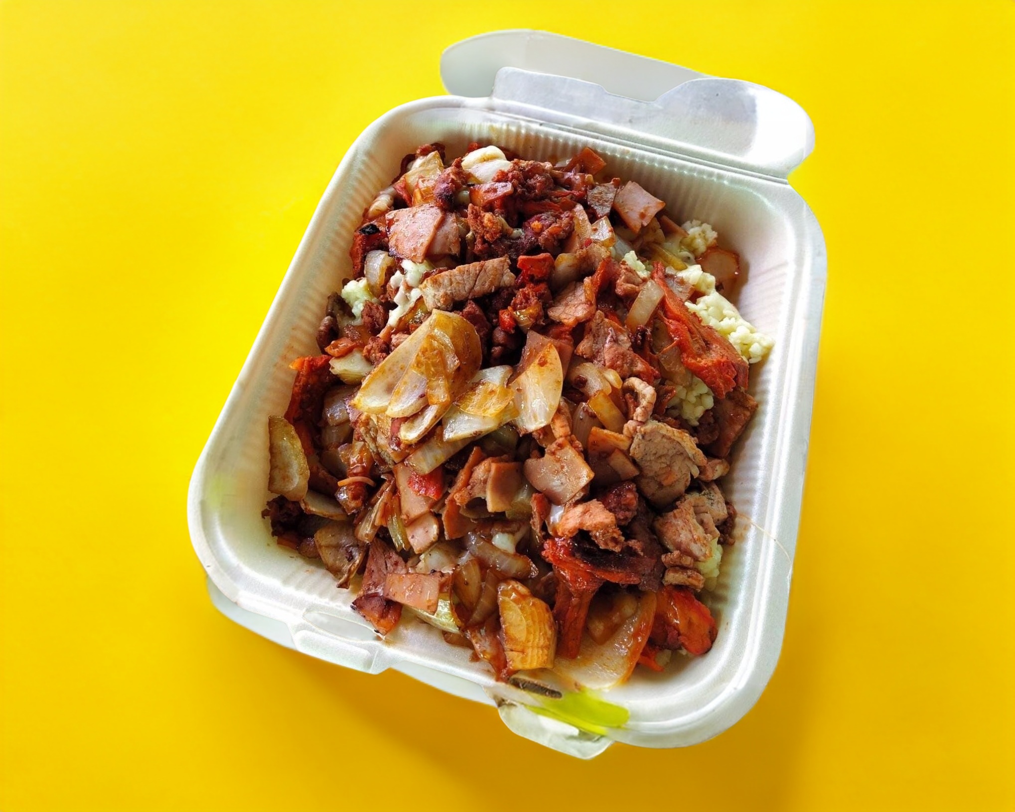 Carne al Pastor, Carne Árabe, tocino, jamón, longaniza, cebolla y queso manchego.