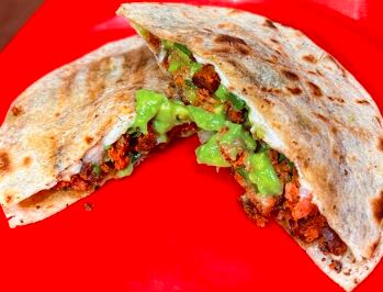 carne al pastor, silantro, cebolla y queso manchego