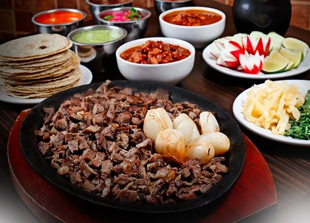 cebolla, poblano, jitomate, tocino, jamon, longaniza,carne al pastor, carne arabe y queso manchego limones -con 10 tortillas de maiz 10 tortillas de harina y salsas