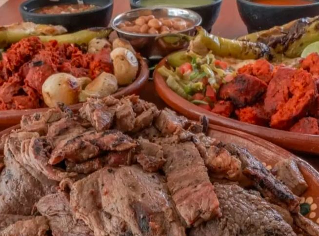 1/4 De carne de sabana de puewrco, 1/4 de longaniza recién asada. Incluye salsas, verdura, limones, tortillas de harina y maíz.