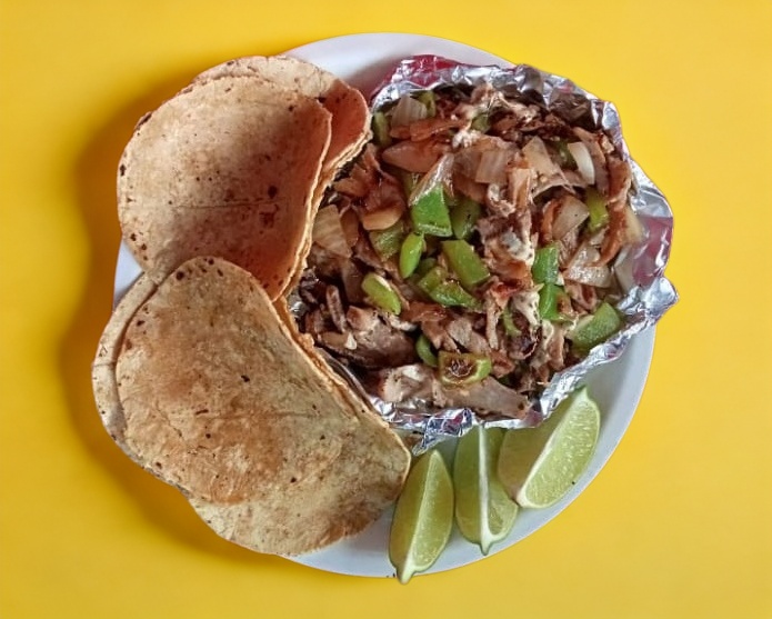 7 tortillas de harina 8 tortillas de maíz 1 cemita salsa limones cilantro cebolla y piña