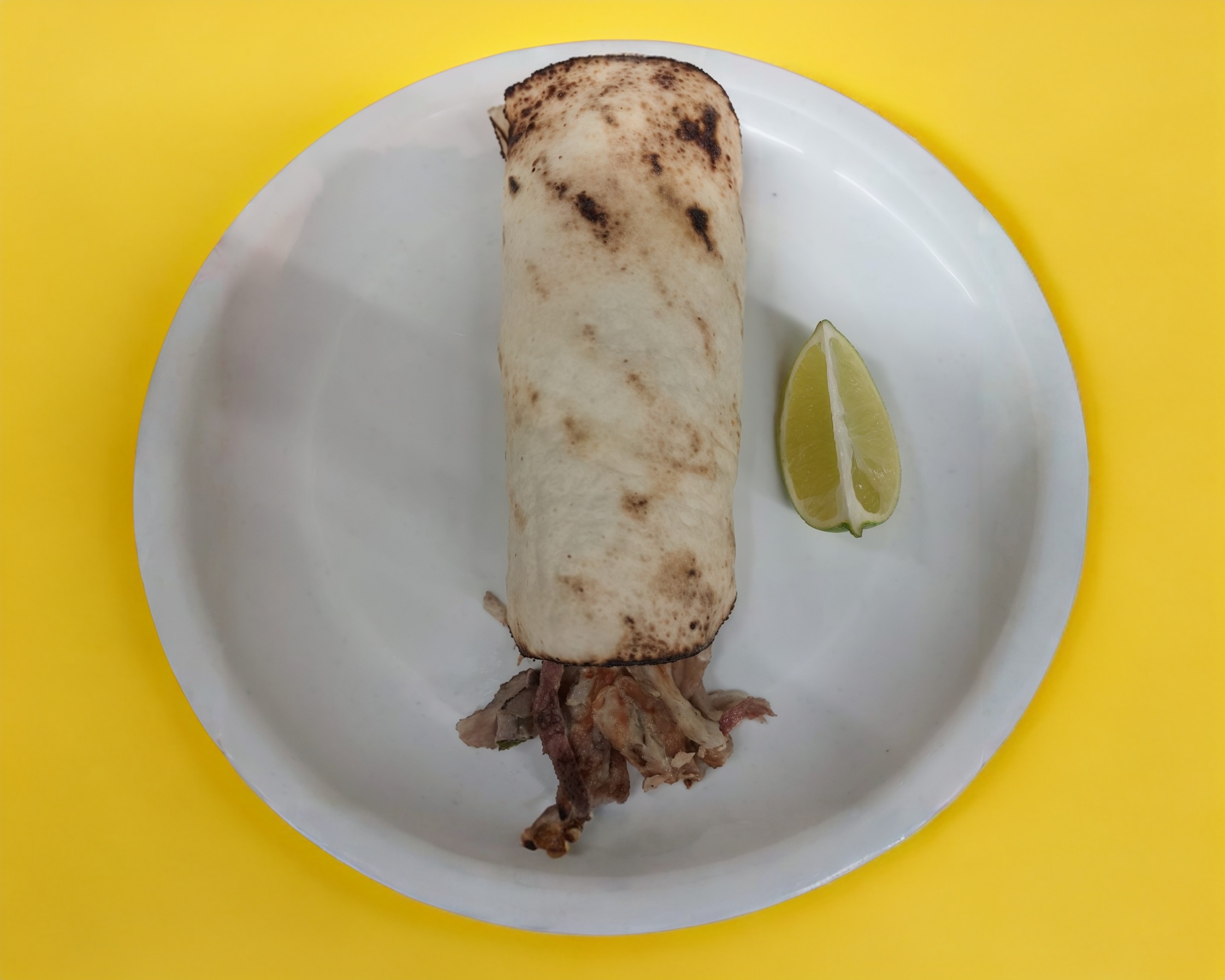 Tortilla de maíz con carne desmechada porcionado.