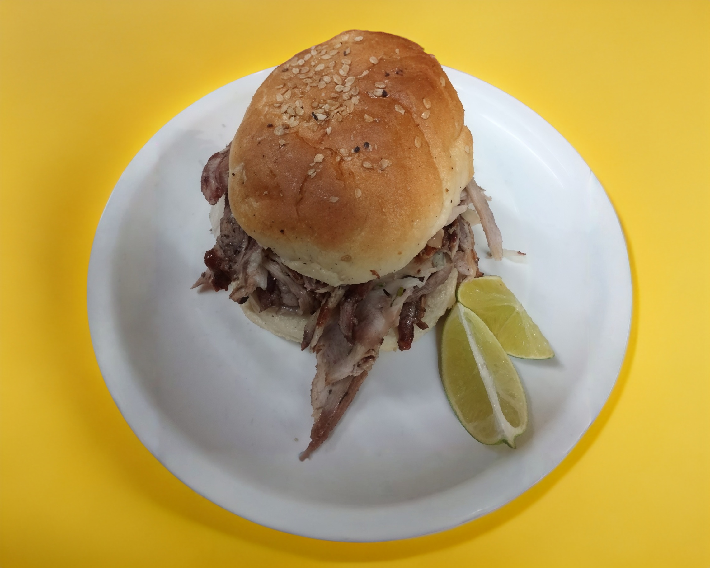 Hamburguesa con carne desmechada y limón salsa al gusto.