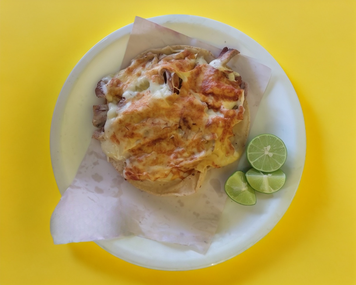 1 kilo de carne árabe 10 tortillas de harina 10 tortillas de maíz 2 cemitas cebollitas asadas limones salsas y queso fundido