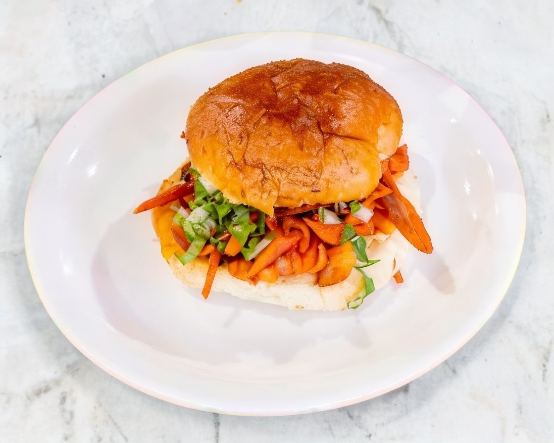 Chuleta, morrón, cebolla, jamón, tocino, queso y tortillas.