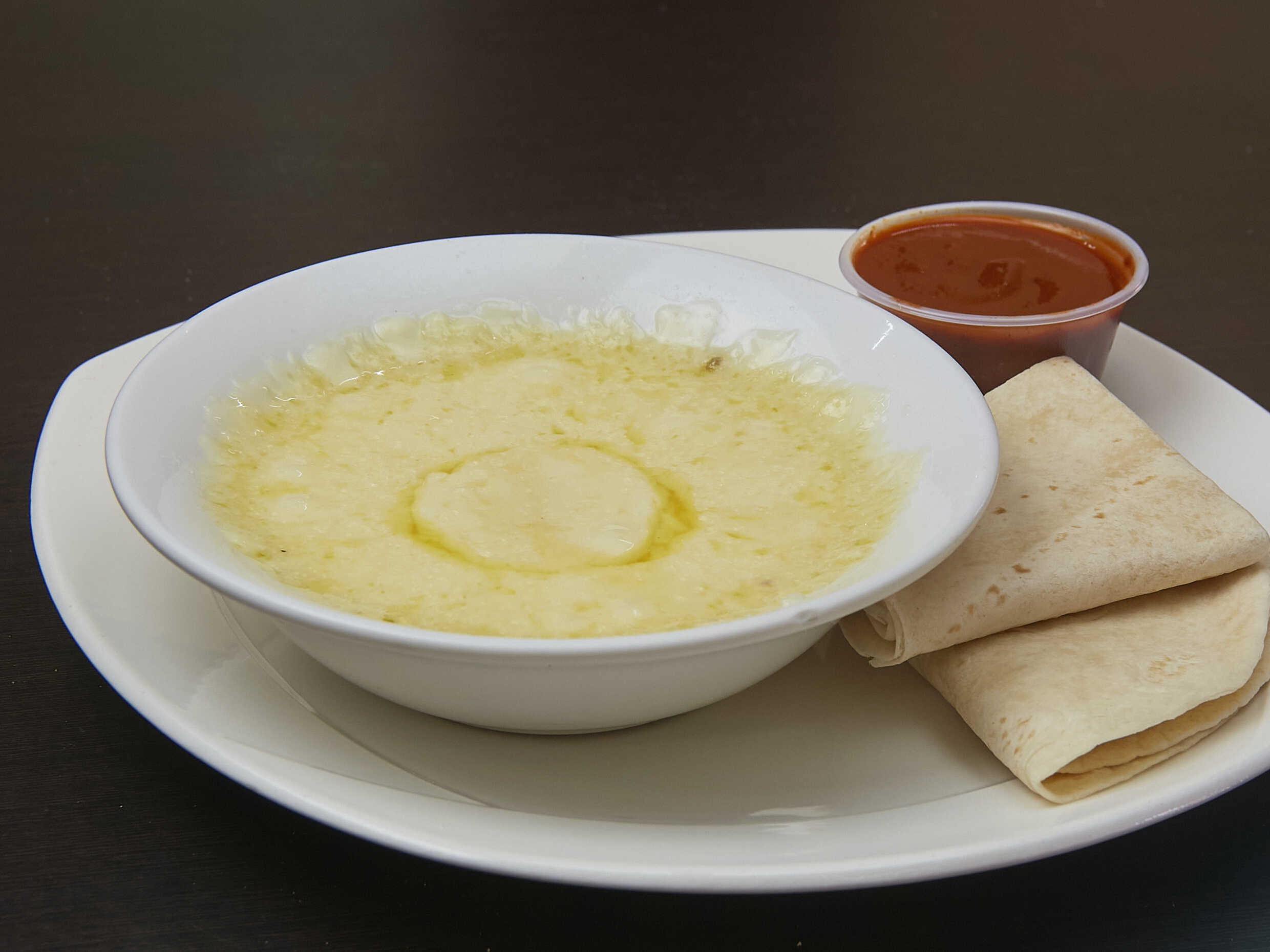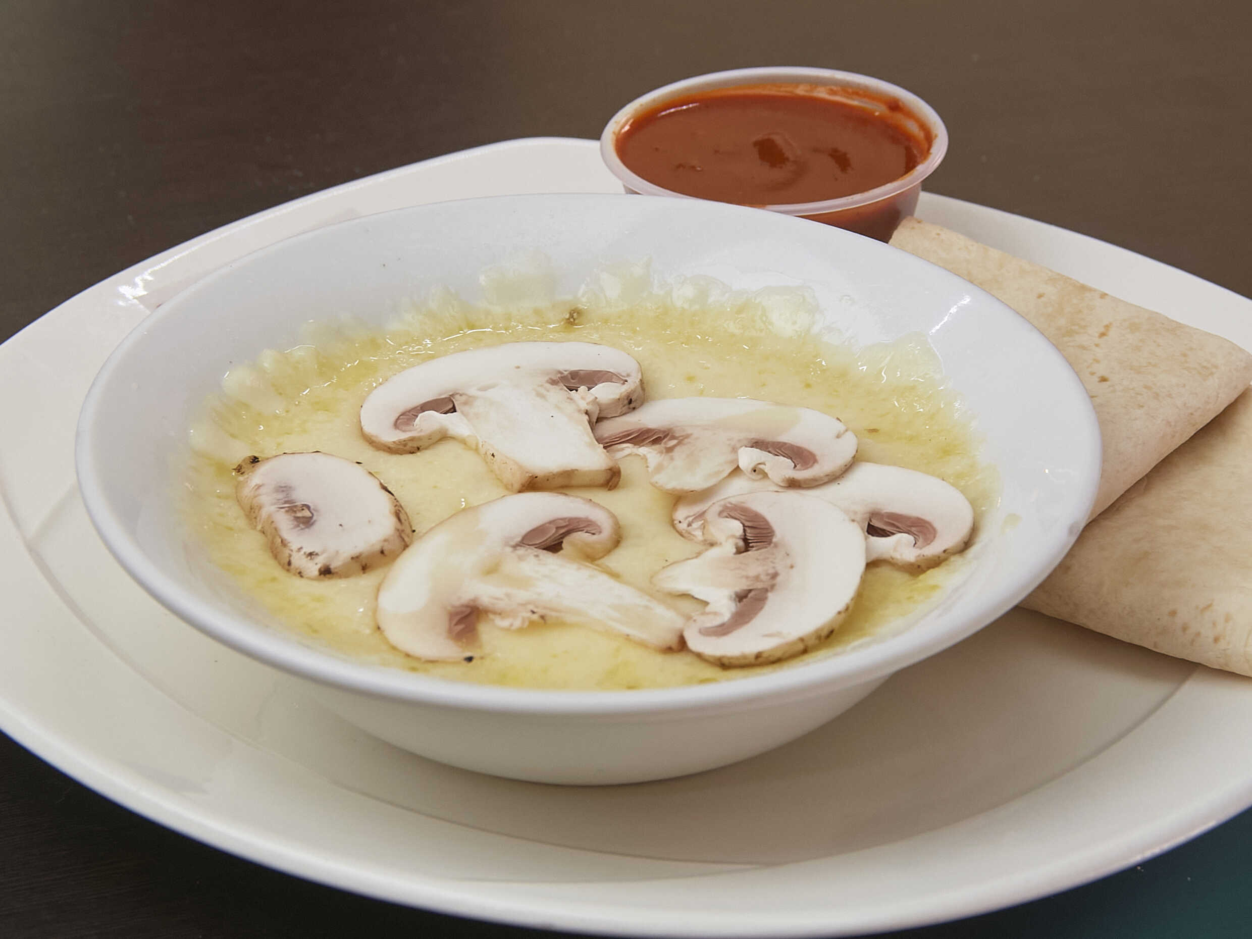Queso fiundido con Champiñones y 3 tortillas de harina.