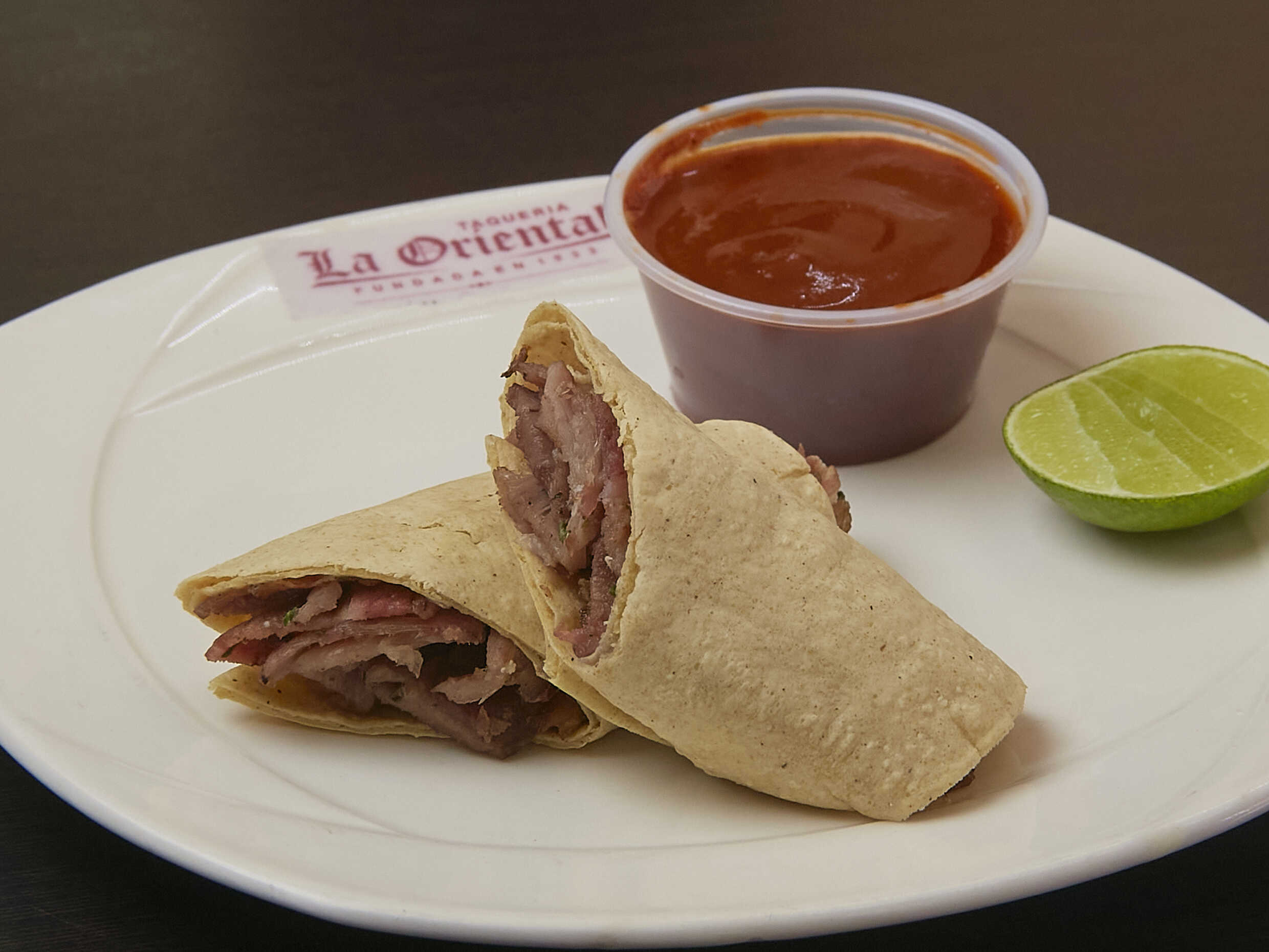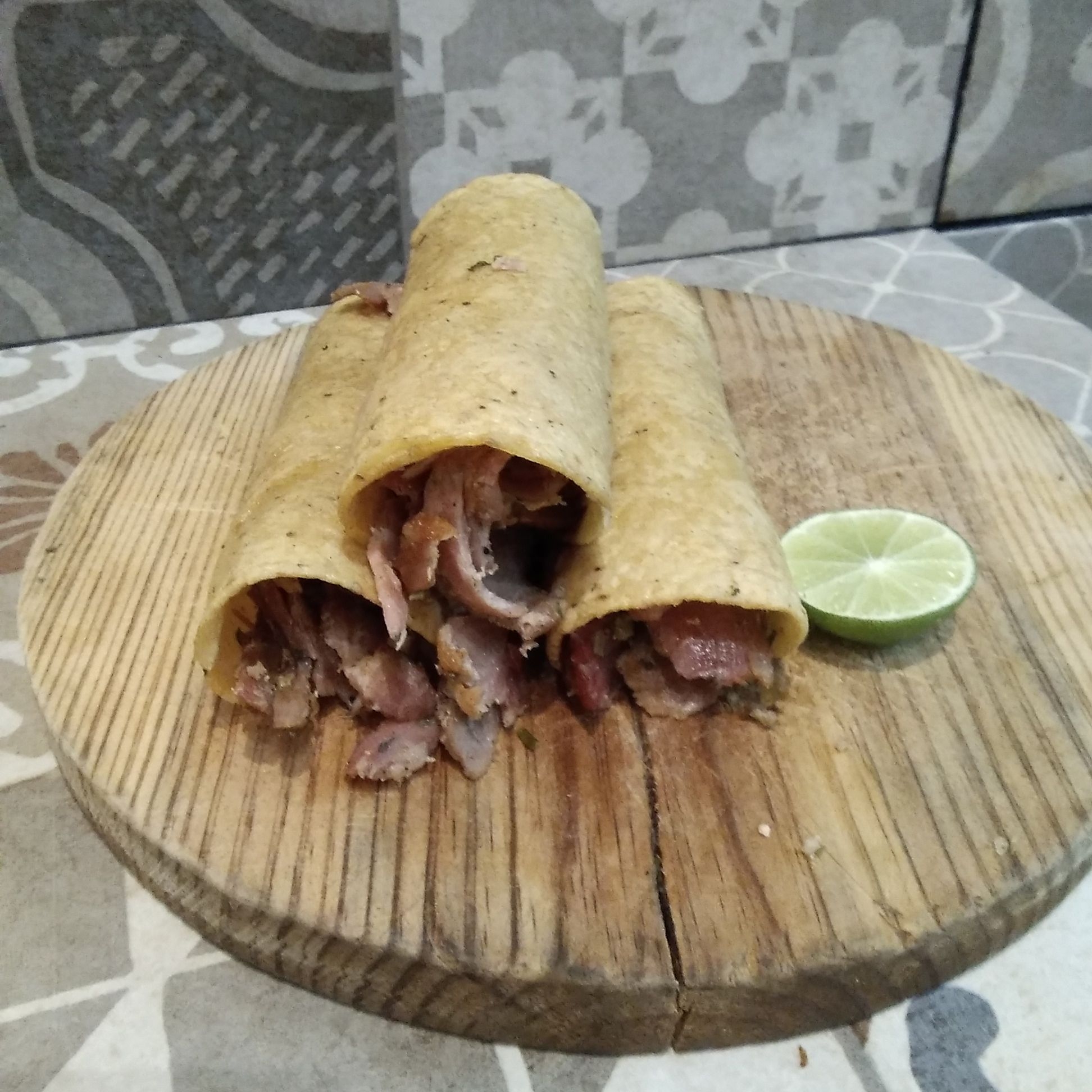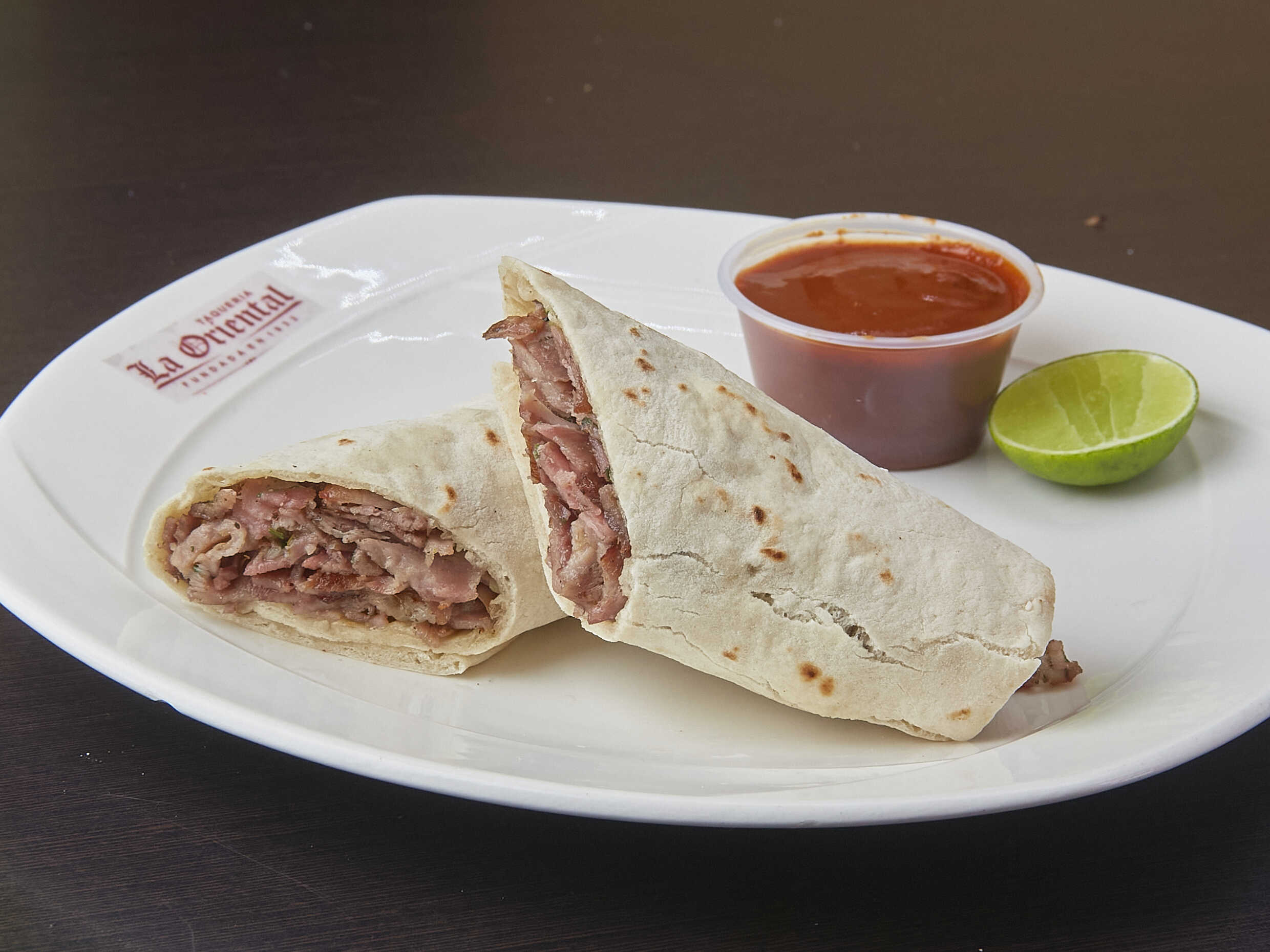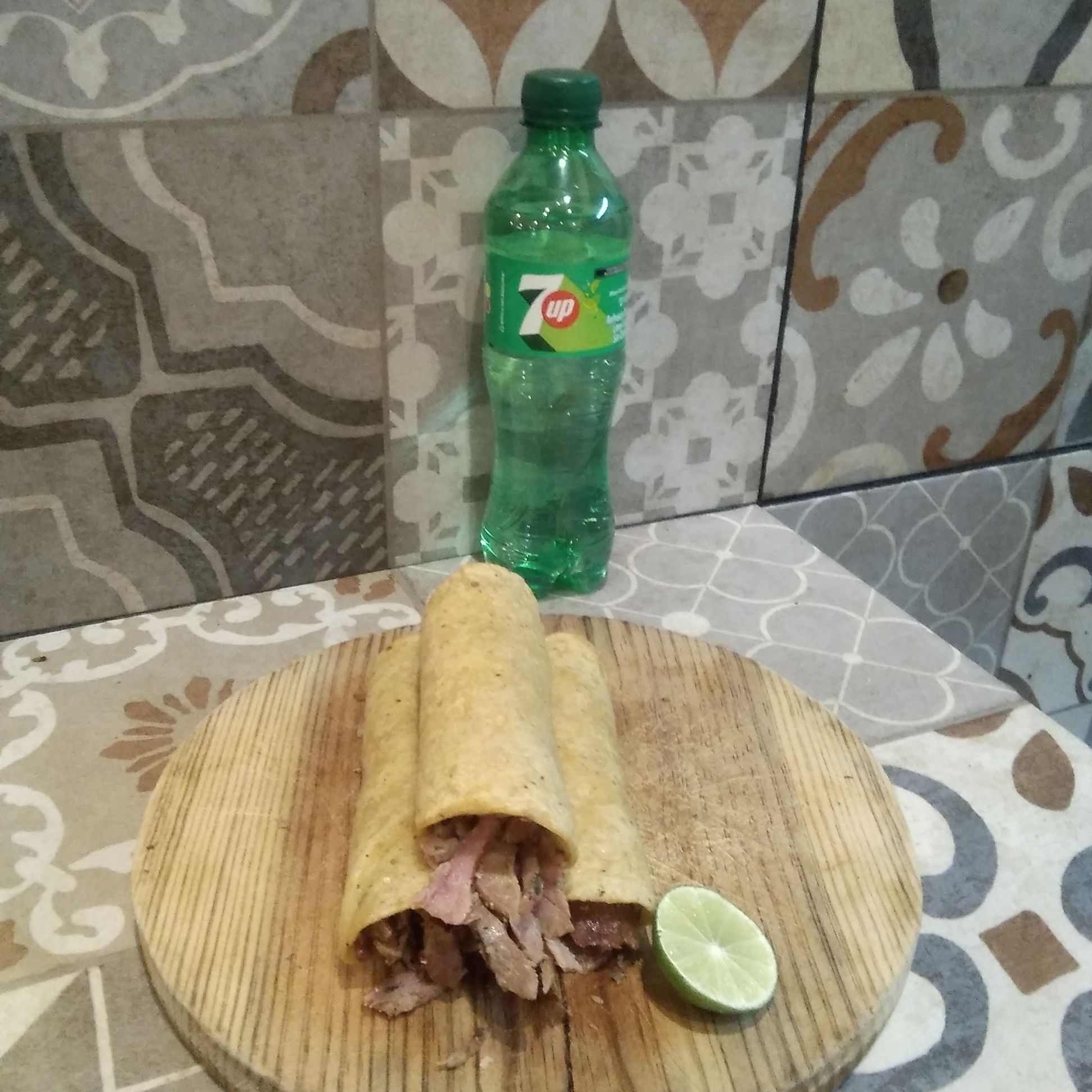Sincronizada de Tortilla de Maíz con queso y carne árabe.