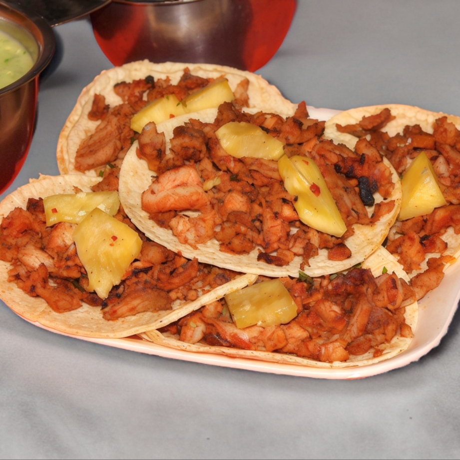 10 tortillas de maíz, 3 tortillas de harina, cilantro, cebolla, limones y salsas