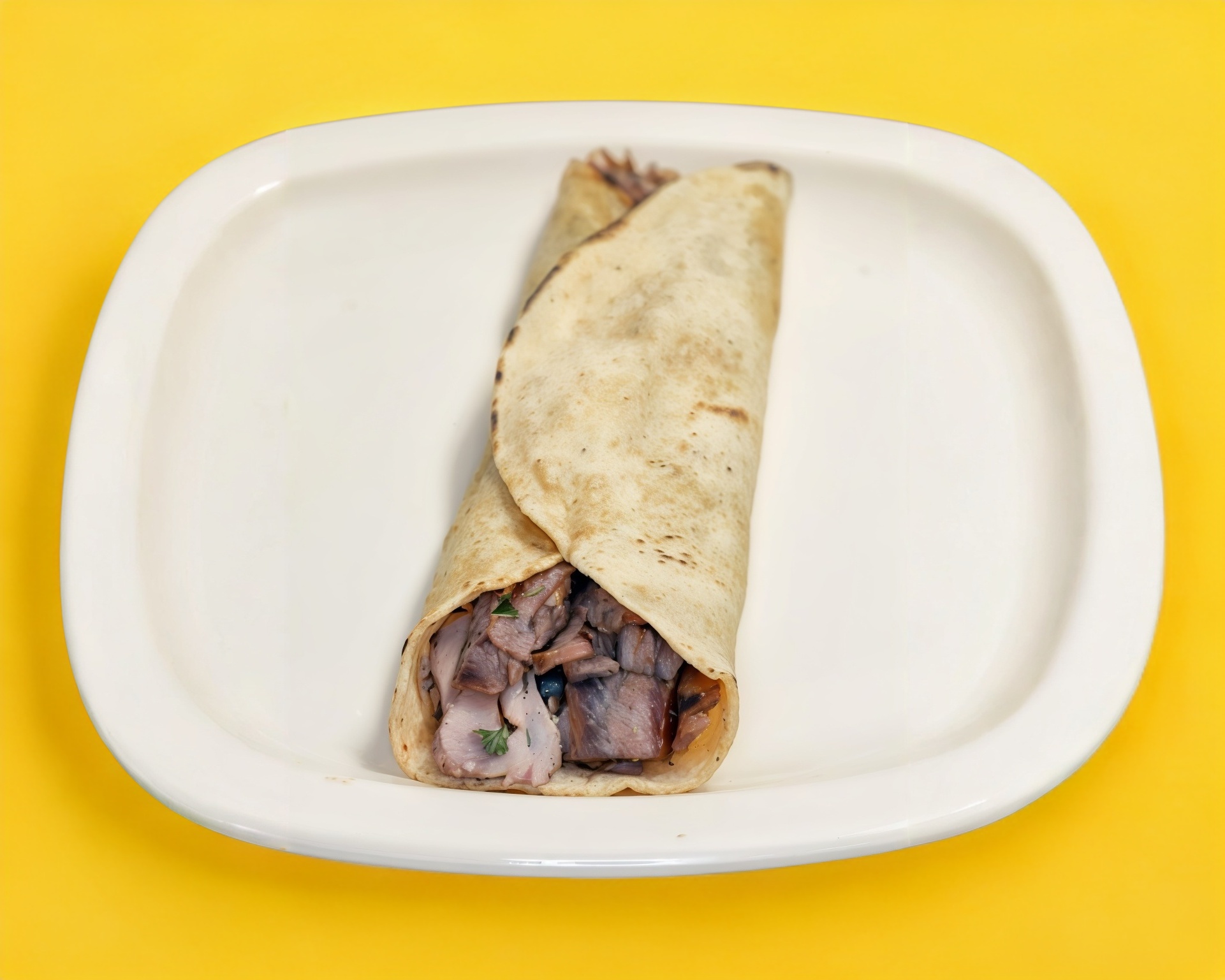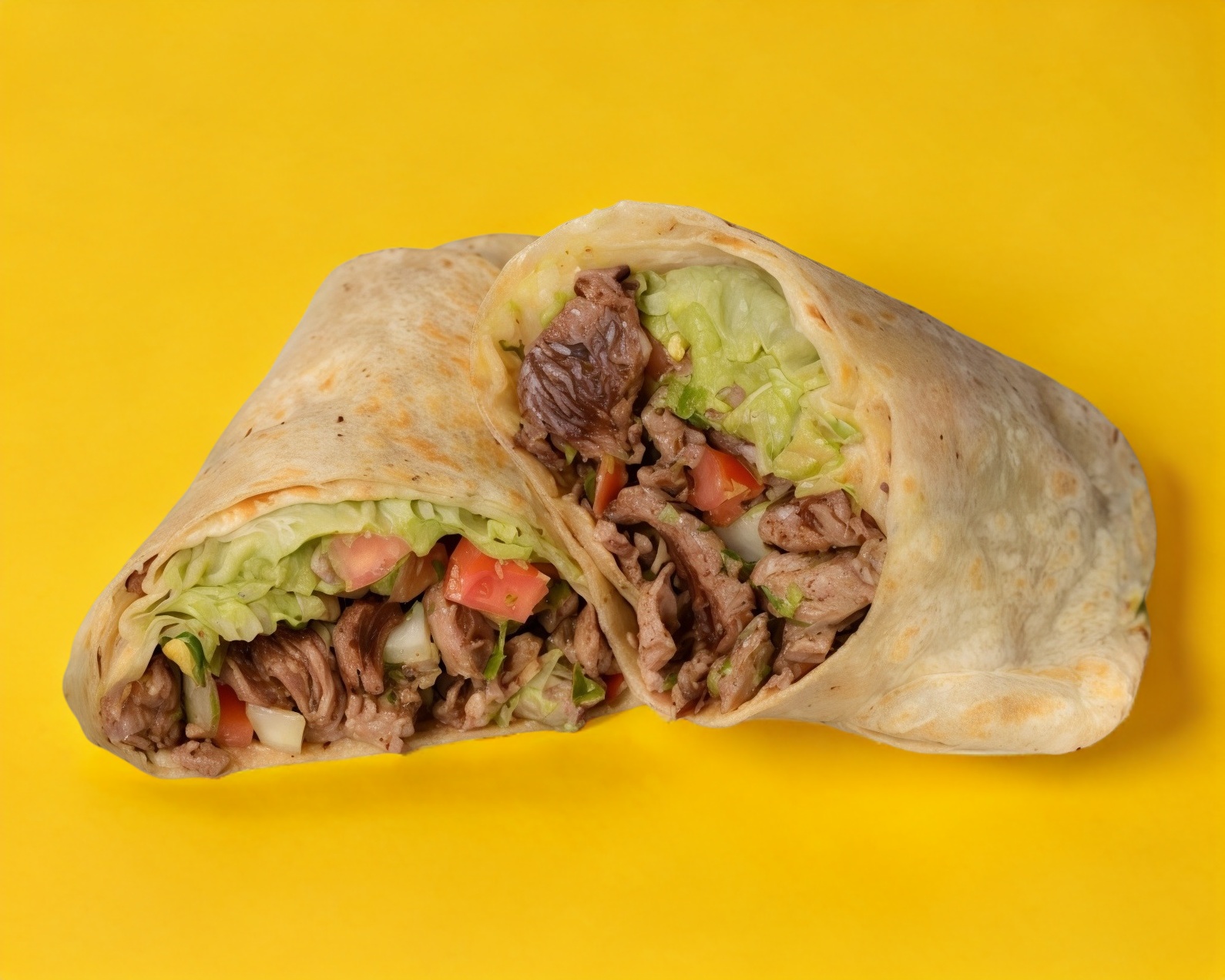 Doble tortilla y carne árabe.