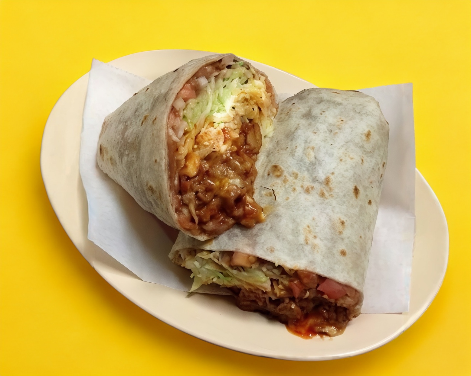 Tortilla extra grande de harina, aguacate, queso, frijoles, carne árabe.