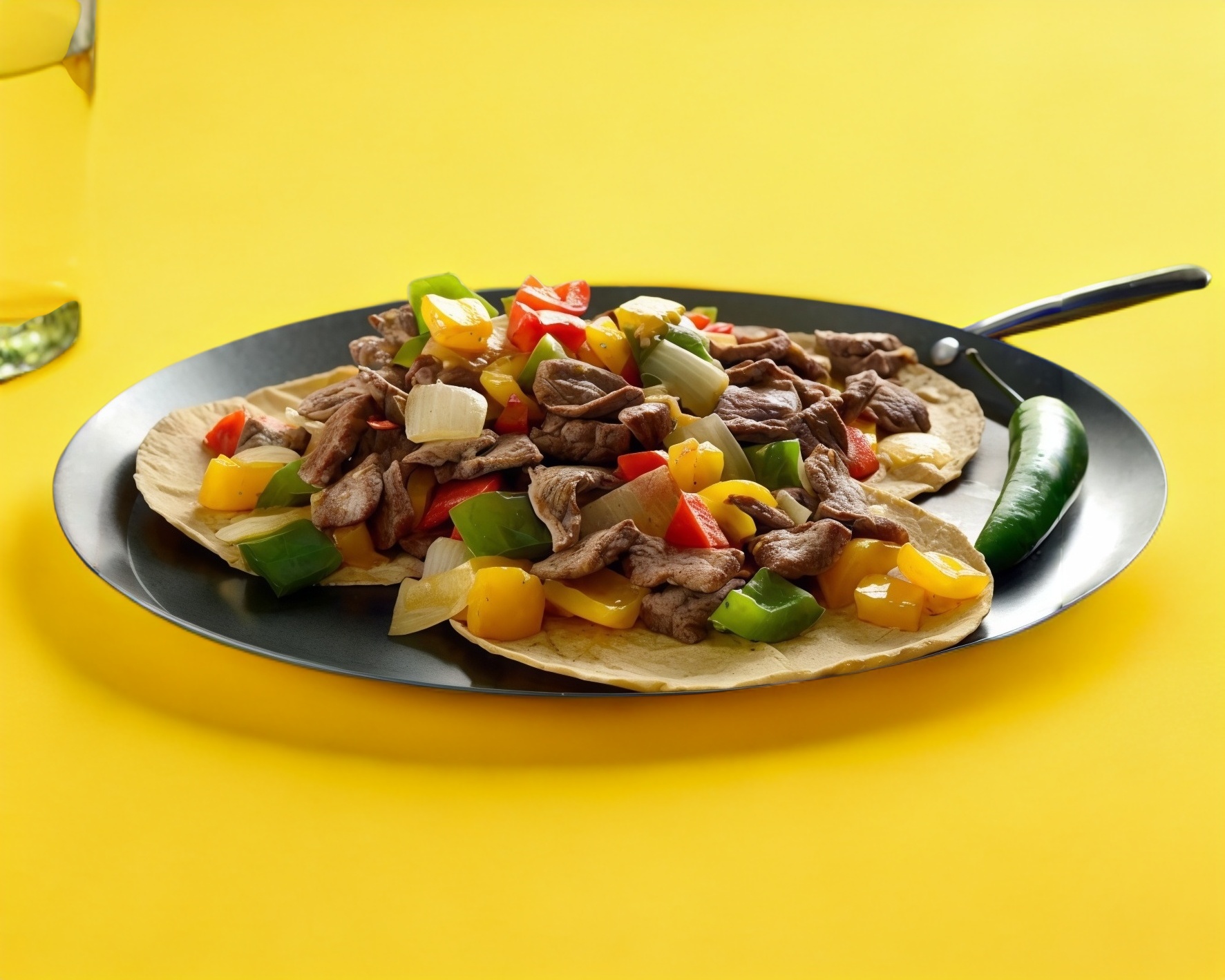 Bistec, tocino, morrón, cebolla, jamón, queso y 10 tortillas.