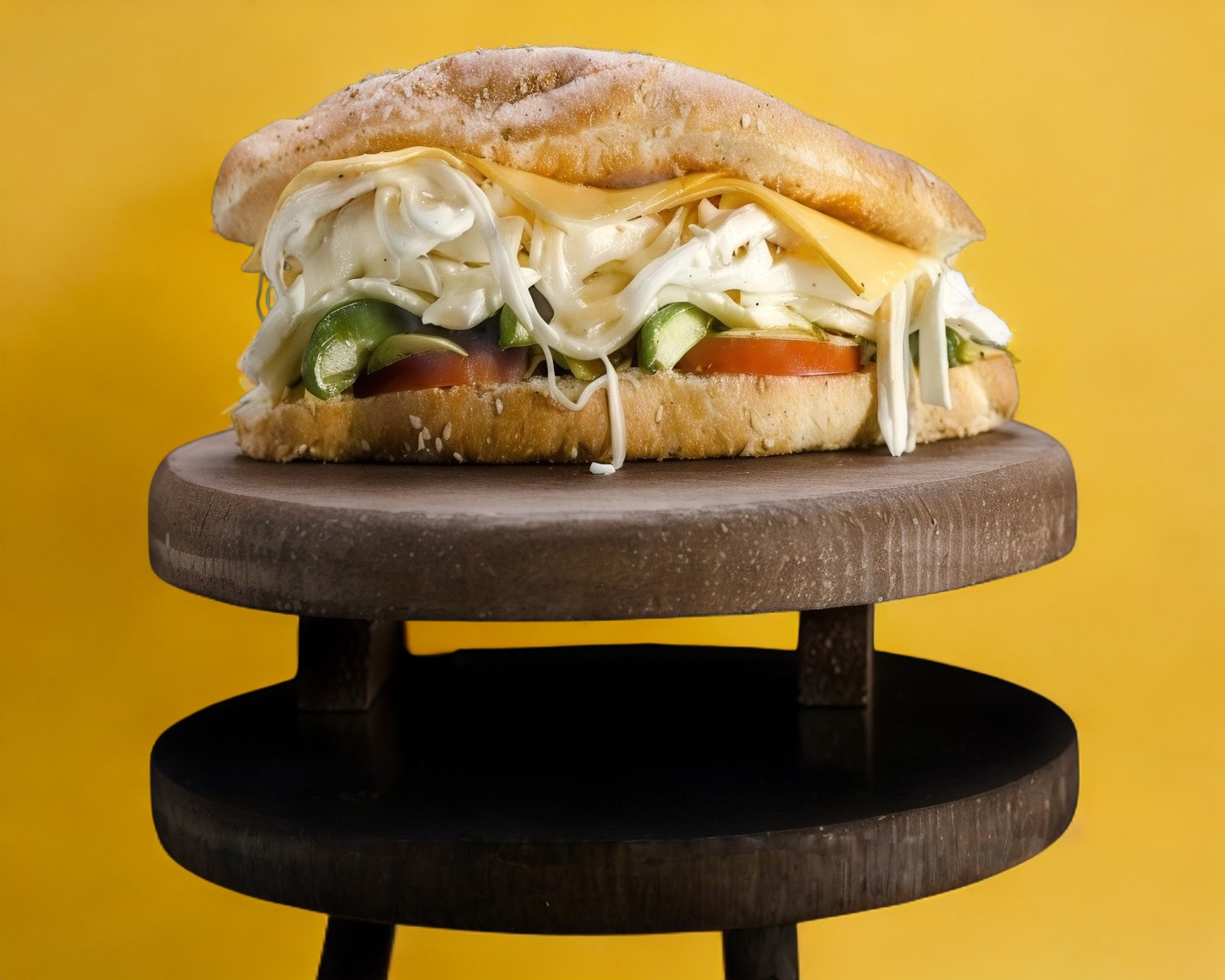 Torta, carne al pastor, queso y jamón.