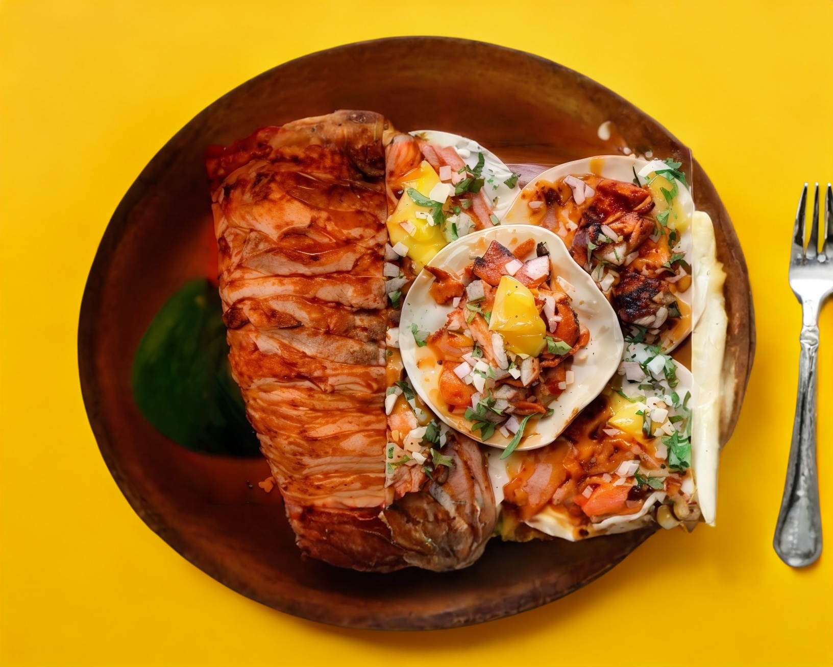 Tocino, morrón, cebolla, habanero y carne al pastor.