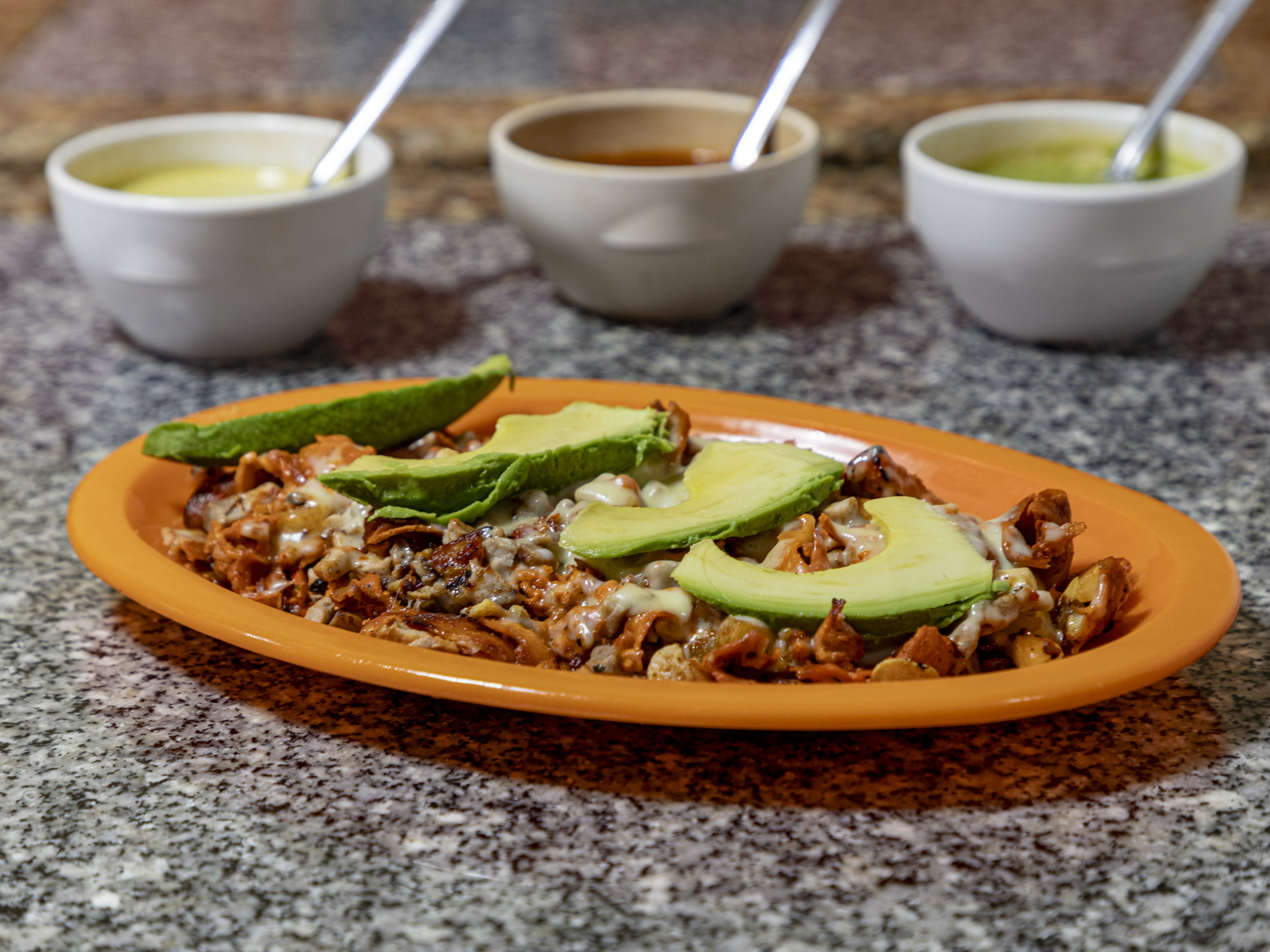 Bistec, tocino, pastor, chuleta, piña, aguacate, queso y chorizo.