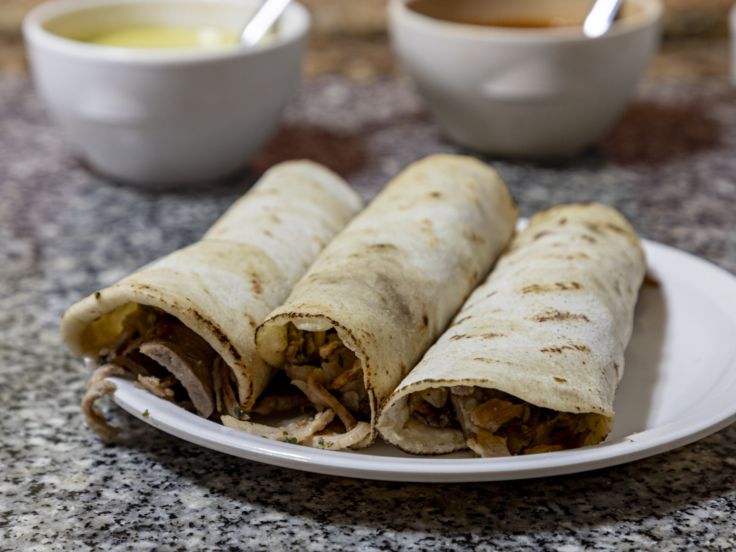 Tres cuartos de kilo de carne árabe, seis tortillas de harina, quince de maíz, limones, salsas.