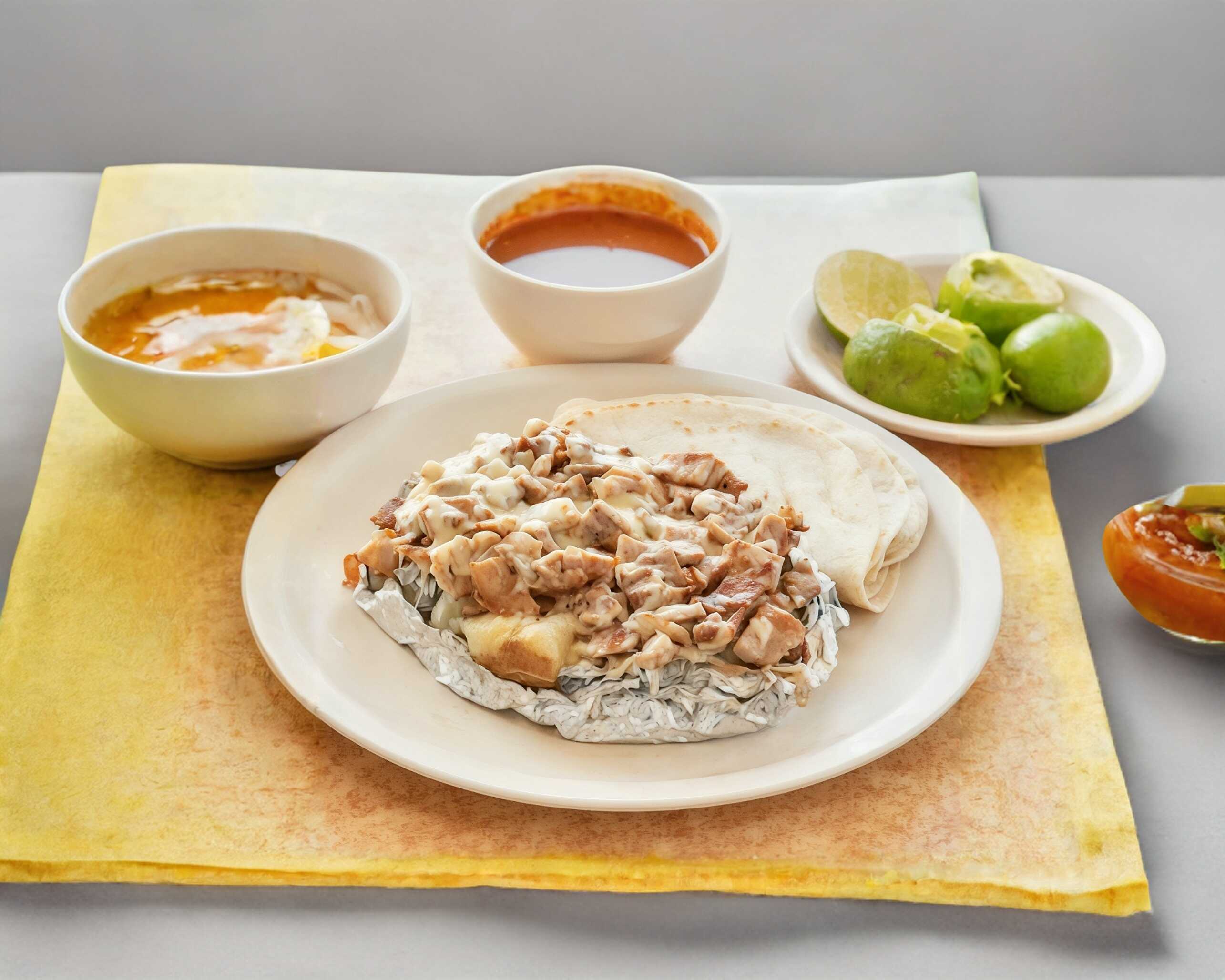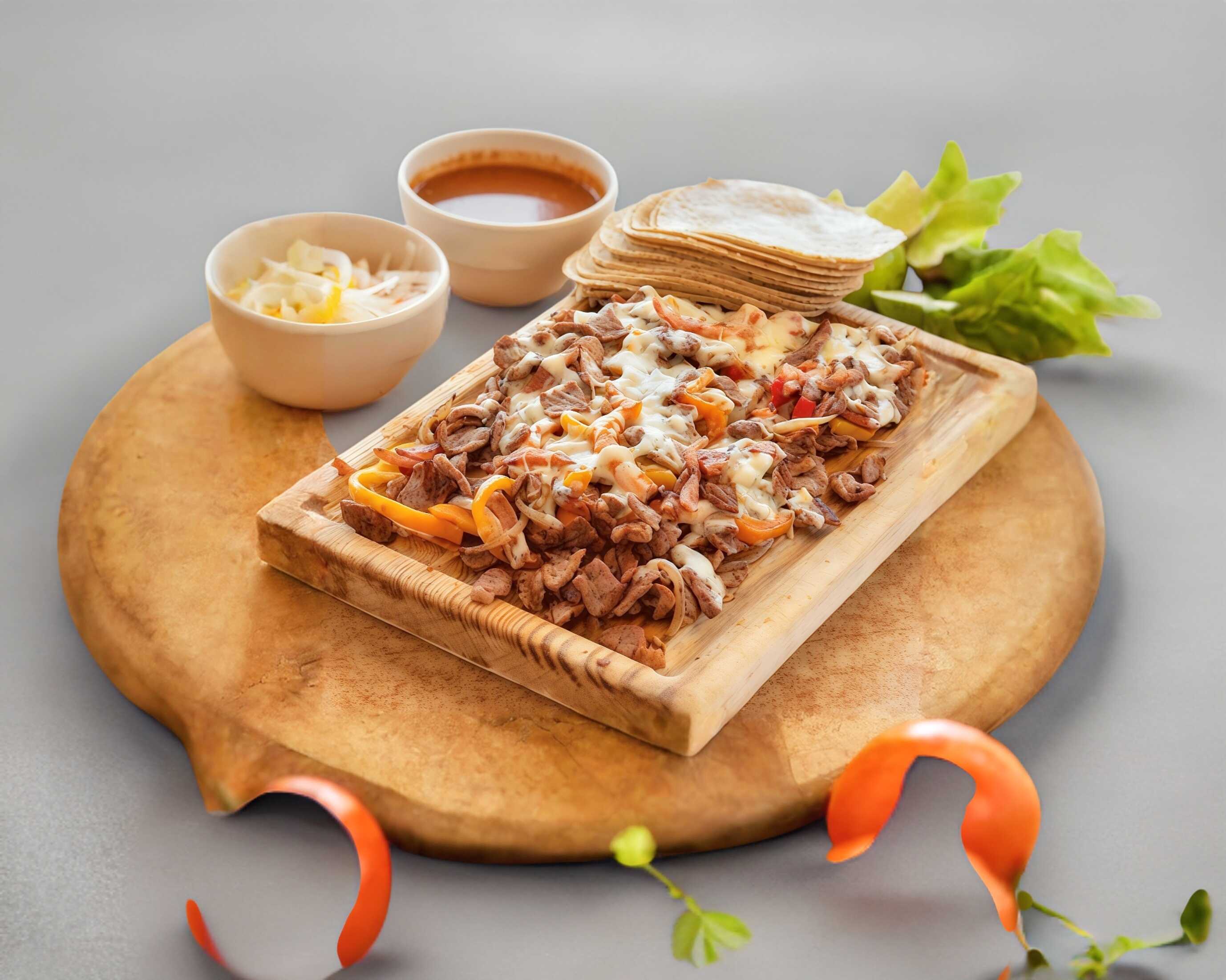 INCLUYE TORTILLAS DE MAIZ, PAN ARABE, SALSAS, VERDURAS