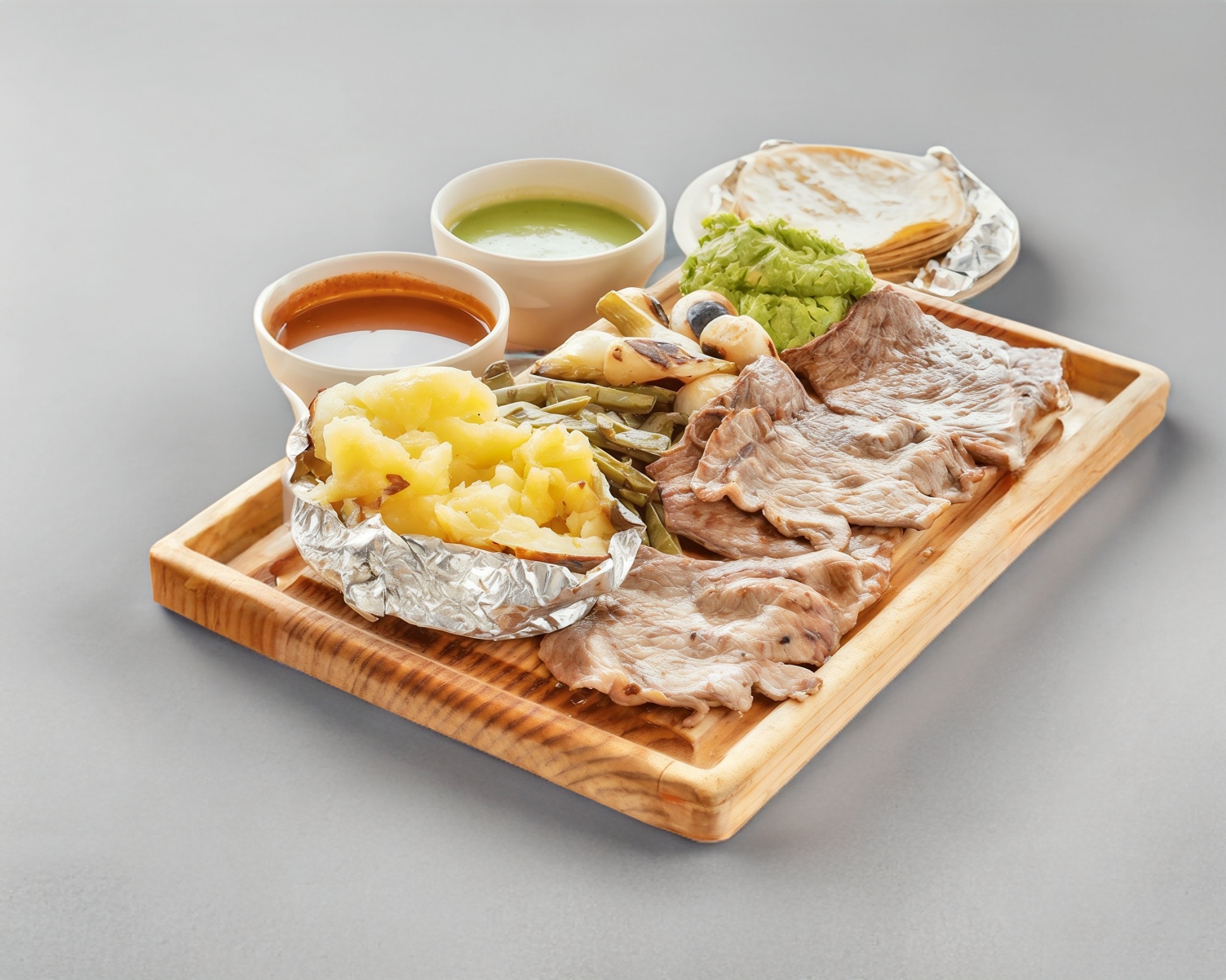 PAPA RELLENA DE ARRACHERA, INCLUYE 4 TORTILLAS DE HARINA