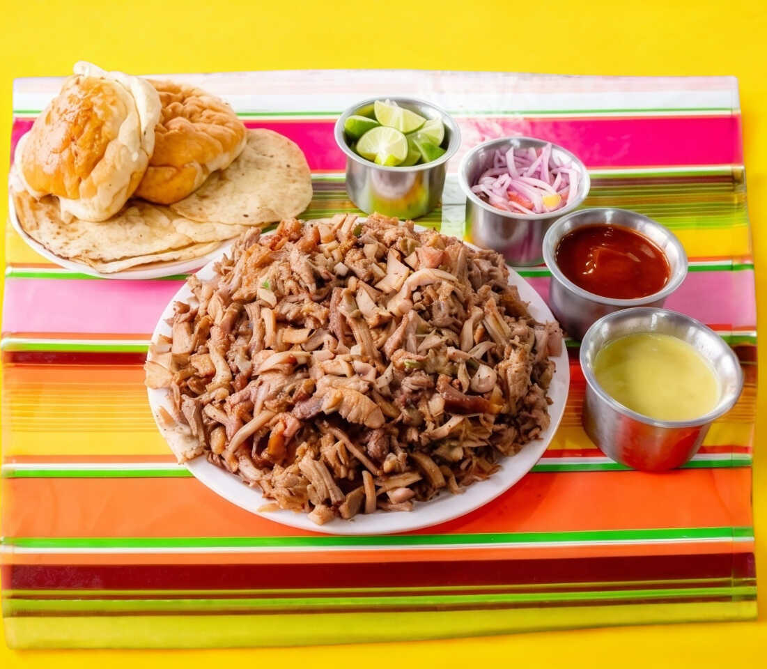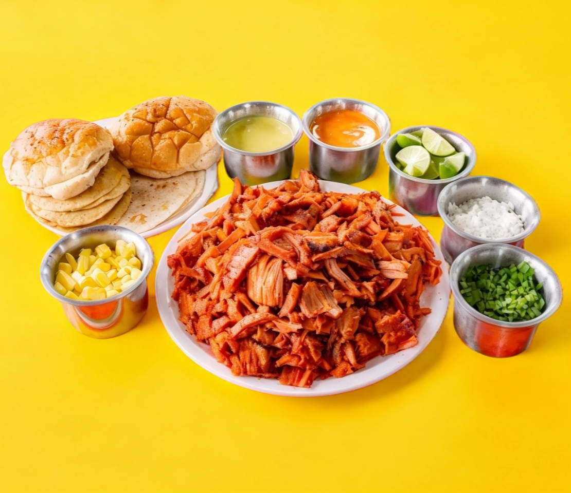 salsas, limones, 6 tortillas de arina, 10 tortillas de maiz, 1 cemita