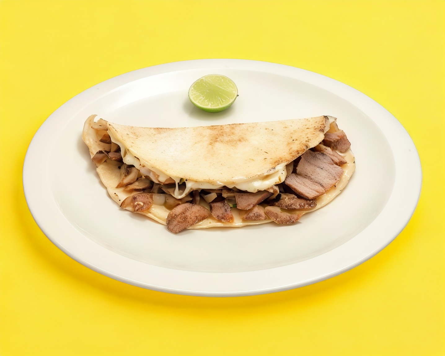 Un taco de carne Árabe con queso en tortilla de harina.