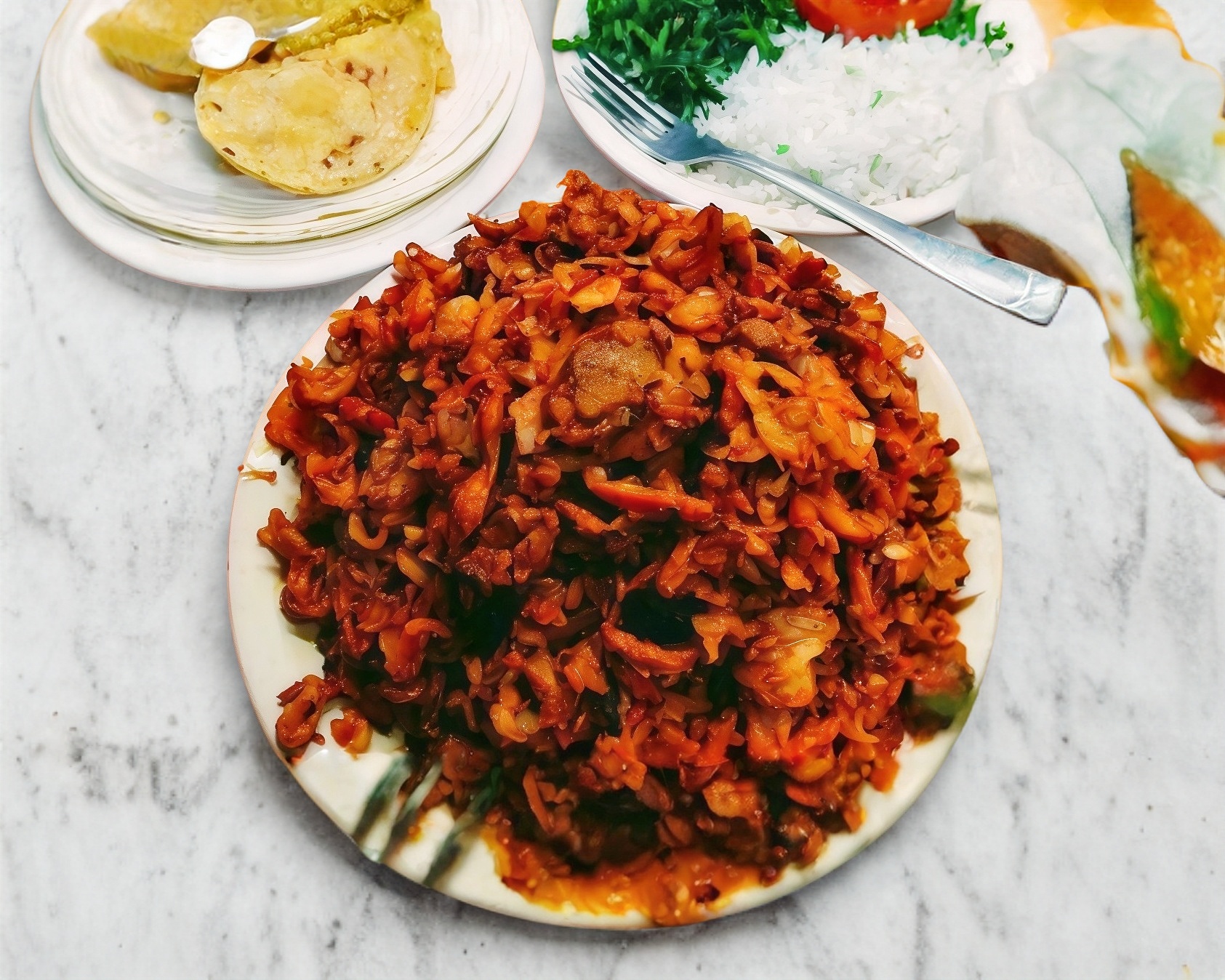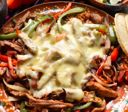 450 g De carne aproximadamente de tu elección cocinada con pimiento y cebolla.
