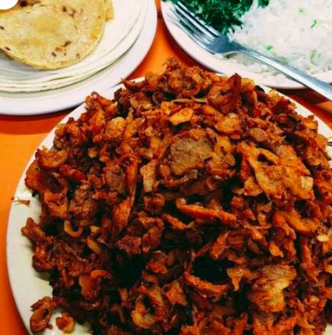 Medio kilo de carne alpastor, con salsas, tortillas de maíz y harina, con verdura y limones.