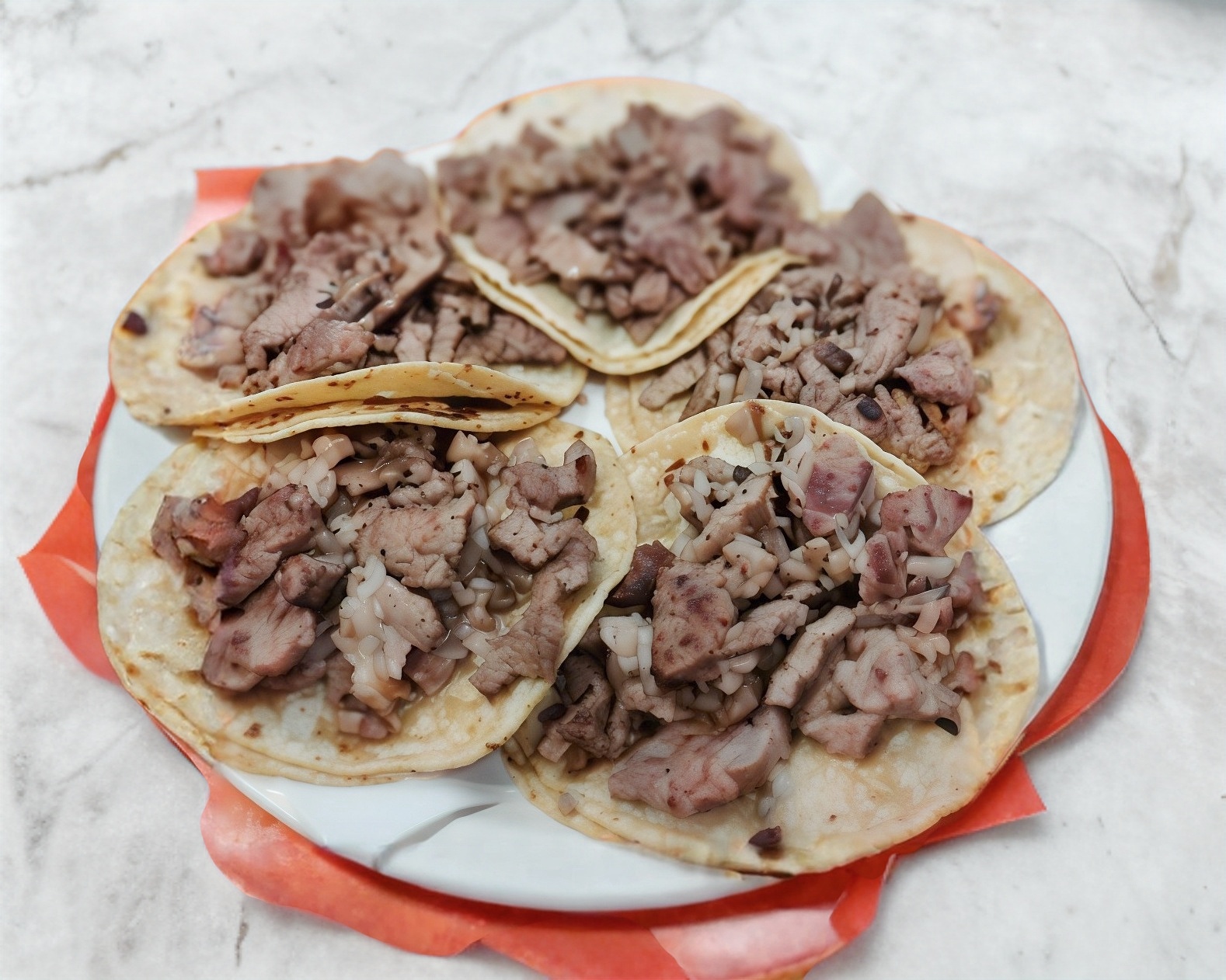 1 Taco de lengua de res al vapor, con doble tortilla de maíz tamaño chalupa.
