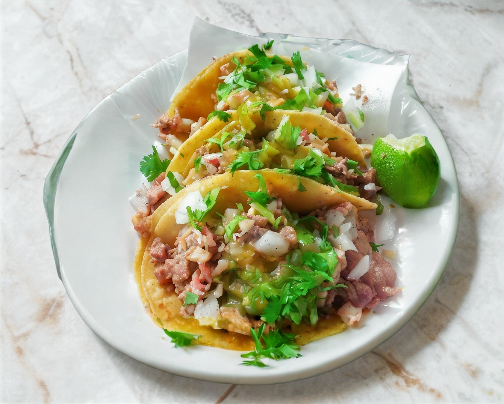 1 Taco de carne al pastor con doble tortilla de maíz tamaño chalupa.
