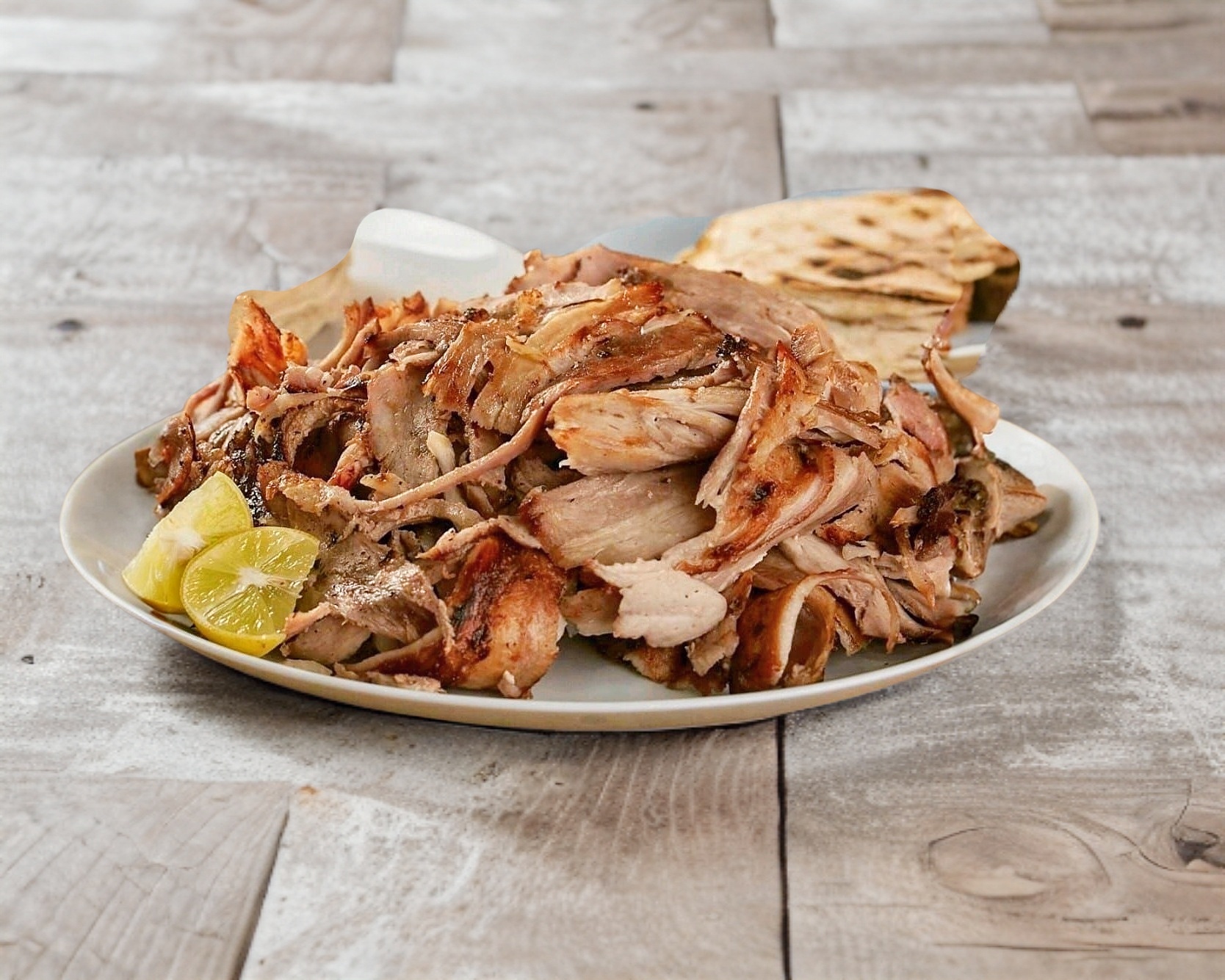 Carne árabe, queso, salsa roja, limón, , chile habaneros.