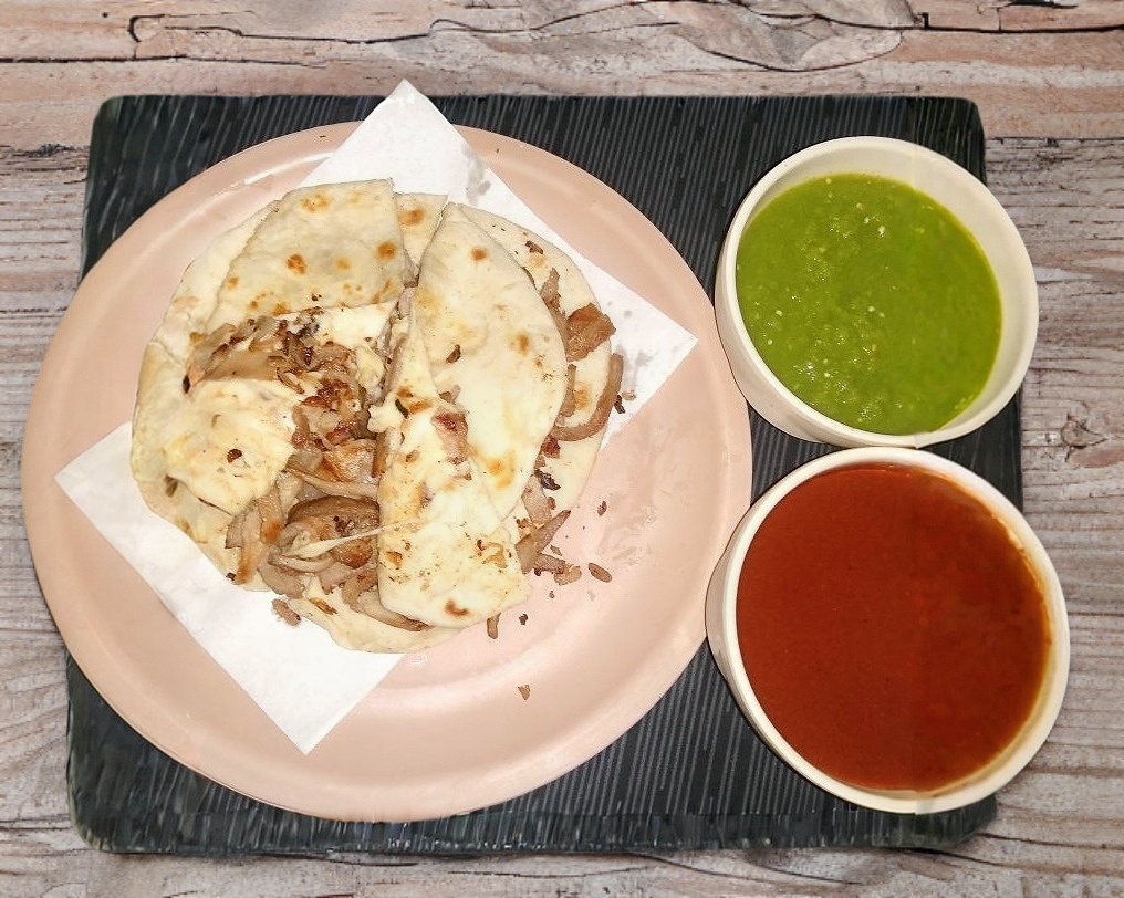 3 piezas, queso, tortilla de harina, jamón, picante. + Bebida a Elegir.*1