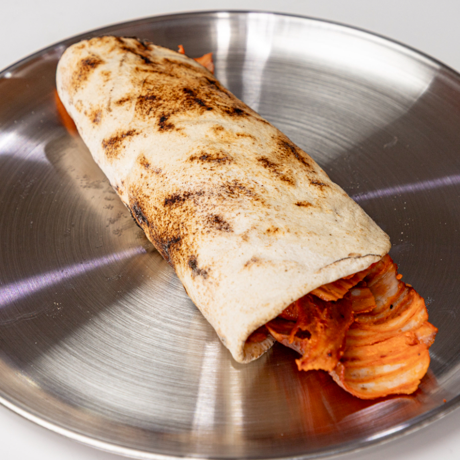 2 tortilla de Pan Árabe Con Salsa Italiana, Queso carne al Pastor, Jamón y Piña