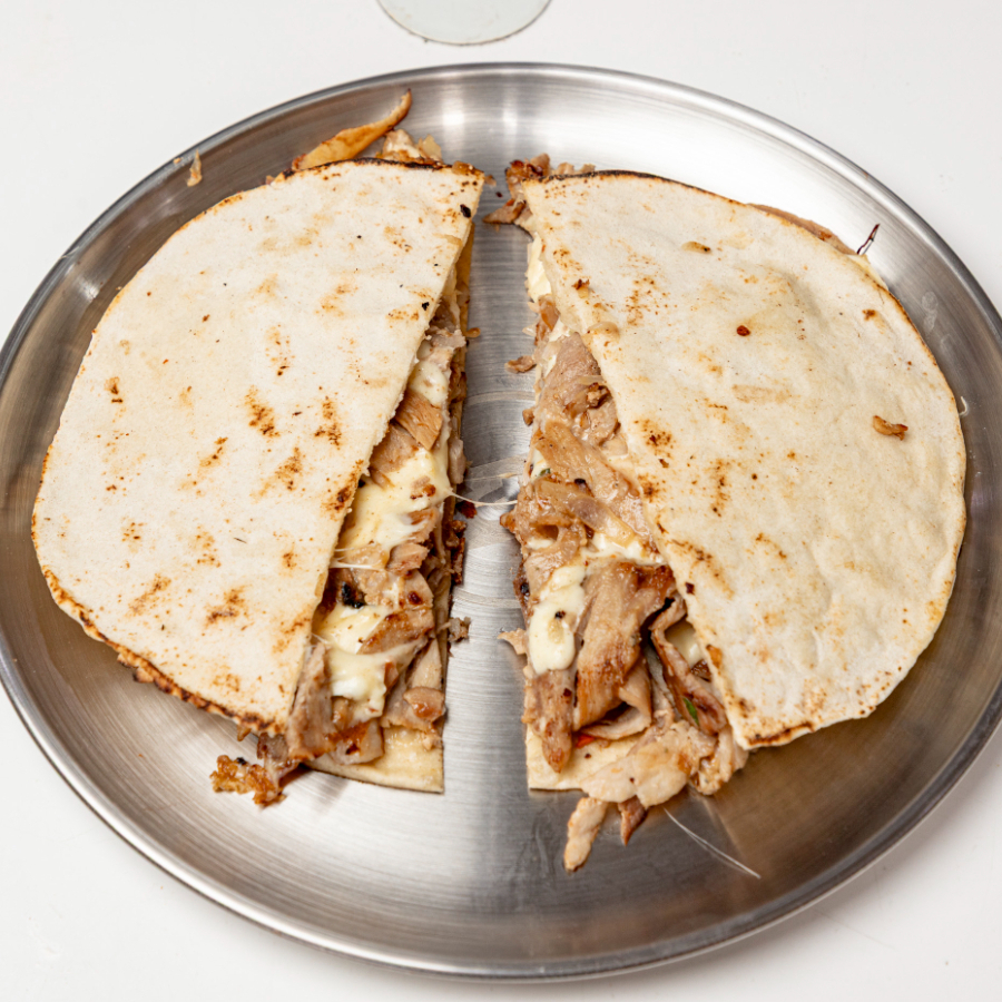 2 Tortillas de pan árabe, Bistec de Puerco y Queso
