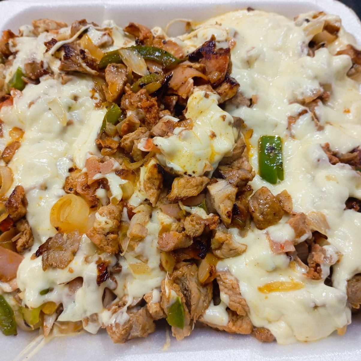 1/2 Kg. -Alambre Bistec de Puerco, Cebolla, Pimiento 🫑 Verde Tocino y Queso y 20 Tortilla de Maíz salsa y limón+ Elige Tu Agua*1