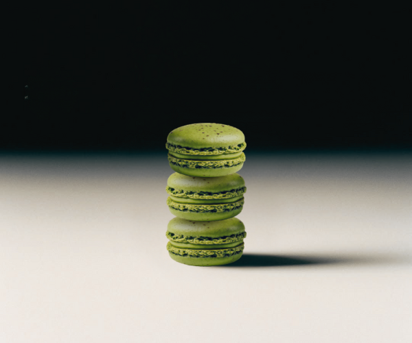 Mini macarrón artesanal de matcha ceremonial importado.