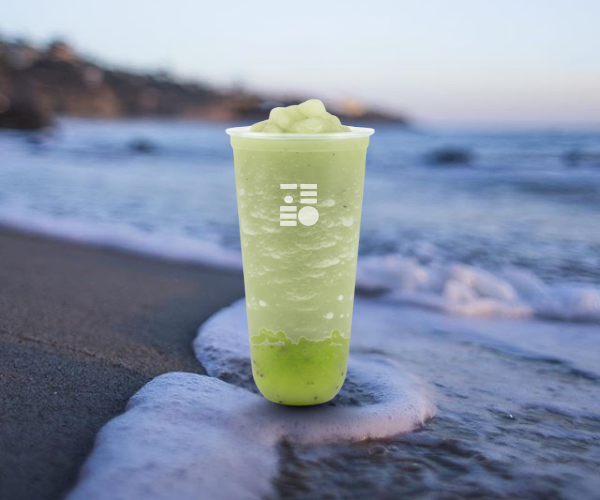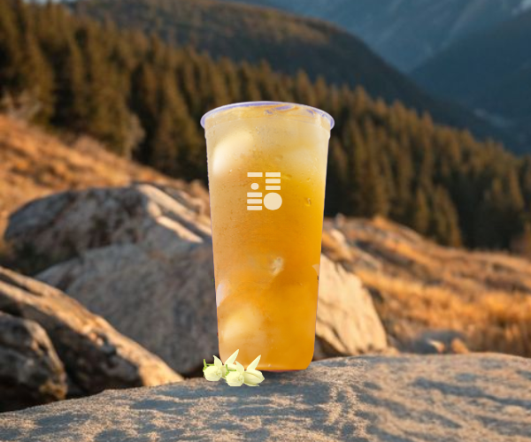 Frostea de durazno, té verde jazmín importado y crystal drops.