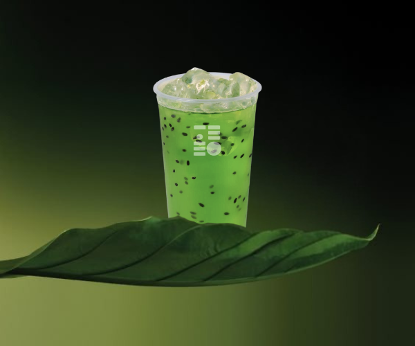 Té verde jazmín importado con chía y jugo fresco de kale. By Organicode.