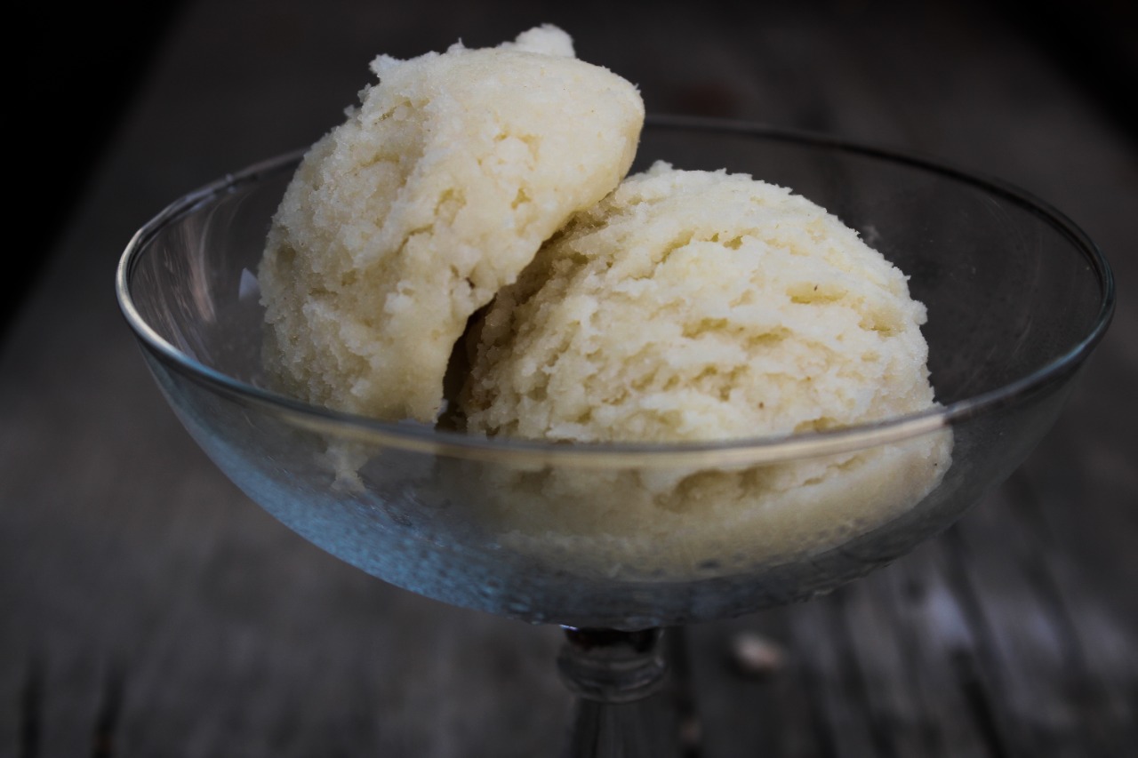 Helado artesanal de garrafa de pay de limón 100% natural.
