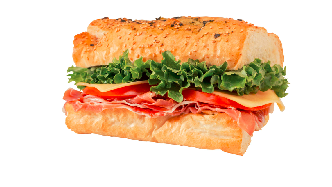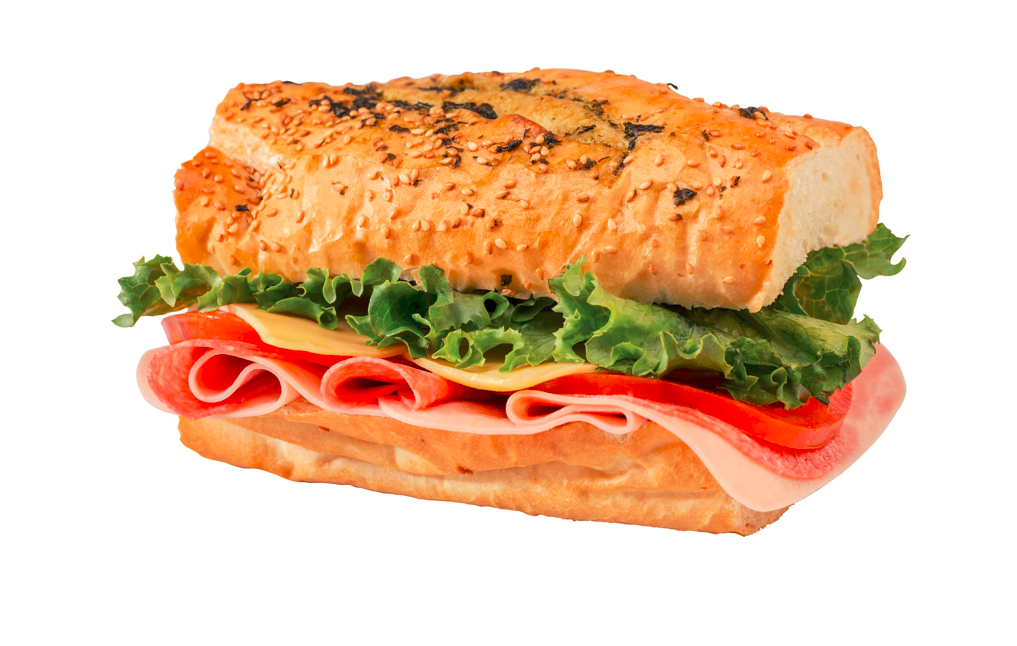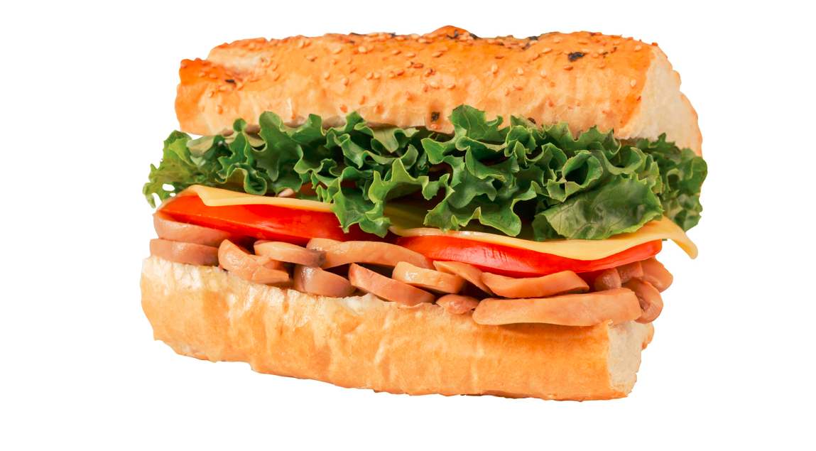 Jamón de pavo, queso gouda, lechuga, jitomate y aderezos de la casa.