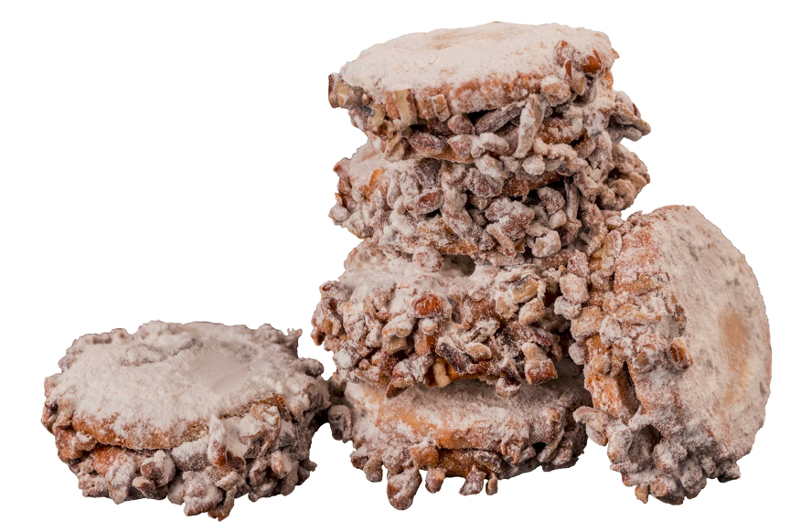 Galleta argentina rellena de dulce de leche, cubierta con nuez y azúcar glass.
