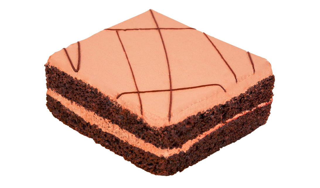 Pastel de chocolate relleno y cubierto con crema de doble chocolate.