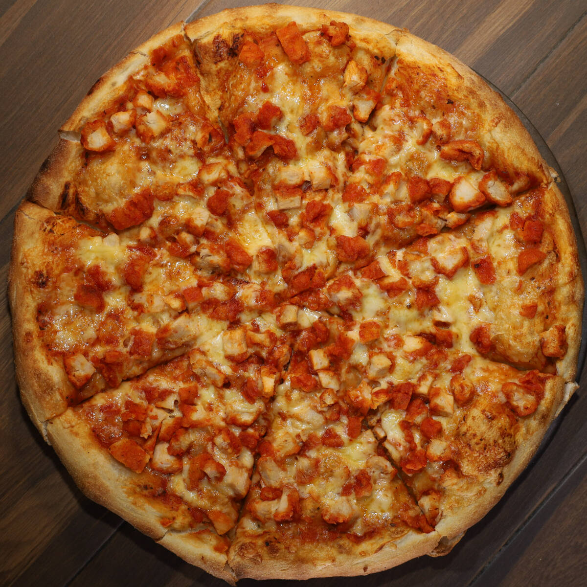 Pizza de Boneless (Trocitos de Pechuga empanizado sabor búfalo)