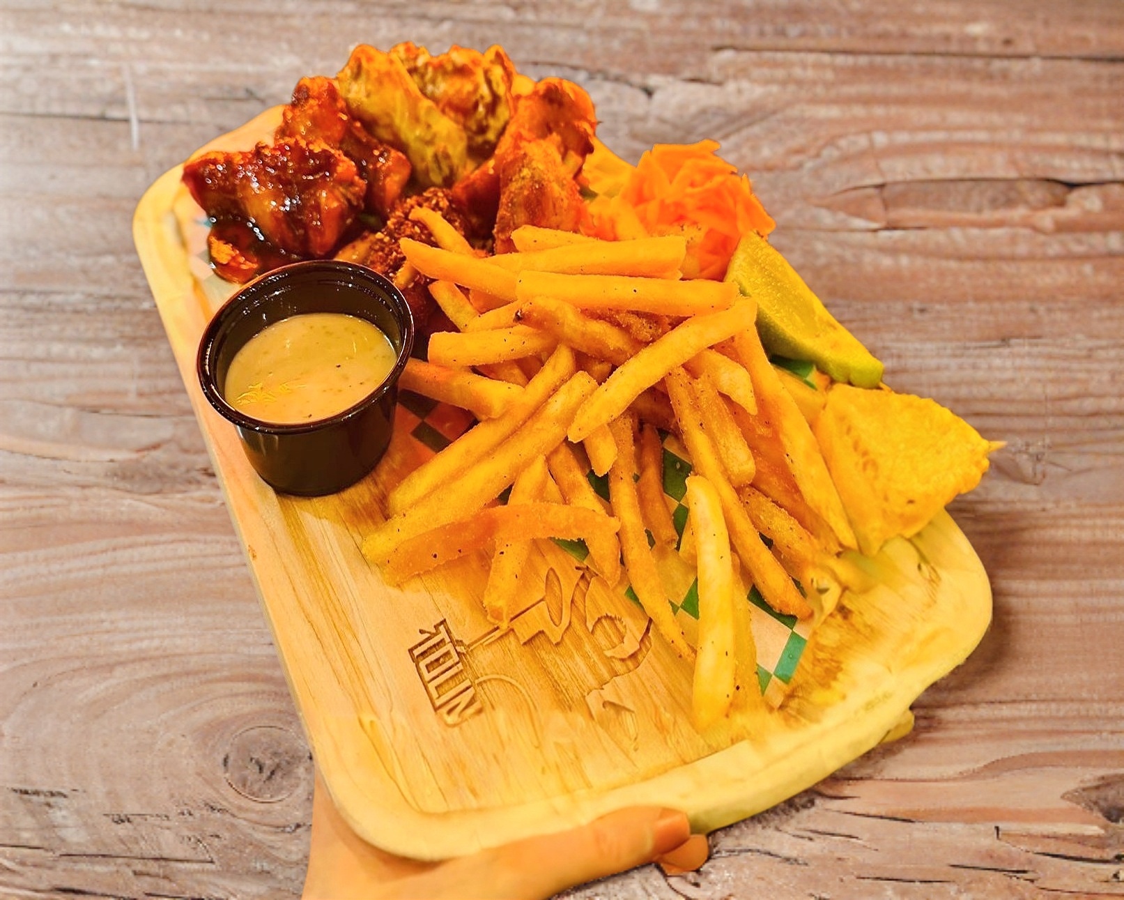 Disfruta de 19 a 22 piezas crujientes y llenas de sabor 🔥, acompañadas de media orden (200 g) de papas a la francesa o papas gajo, a tu elección. ¡El combo perfecto para compartir o darte un gusto