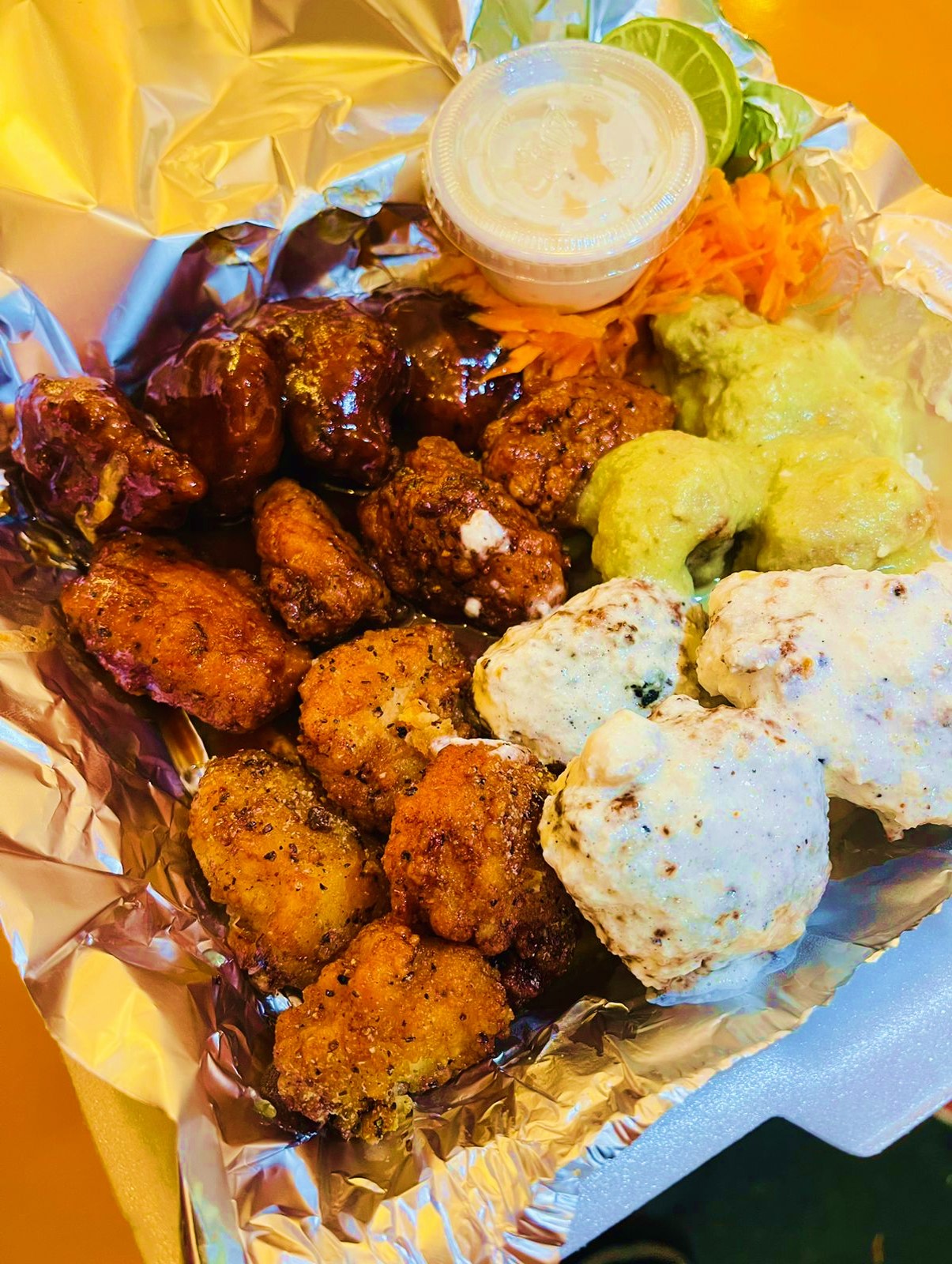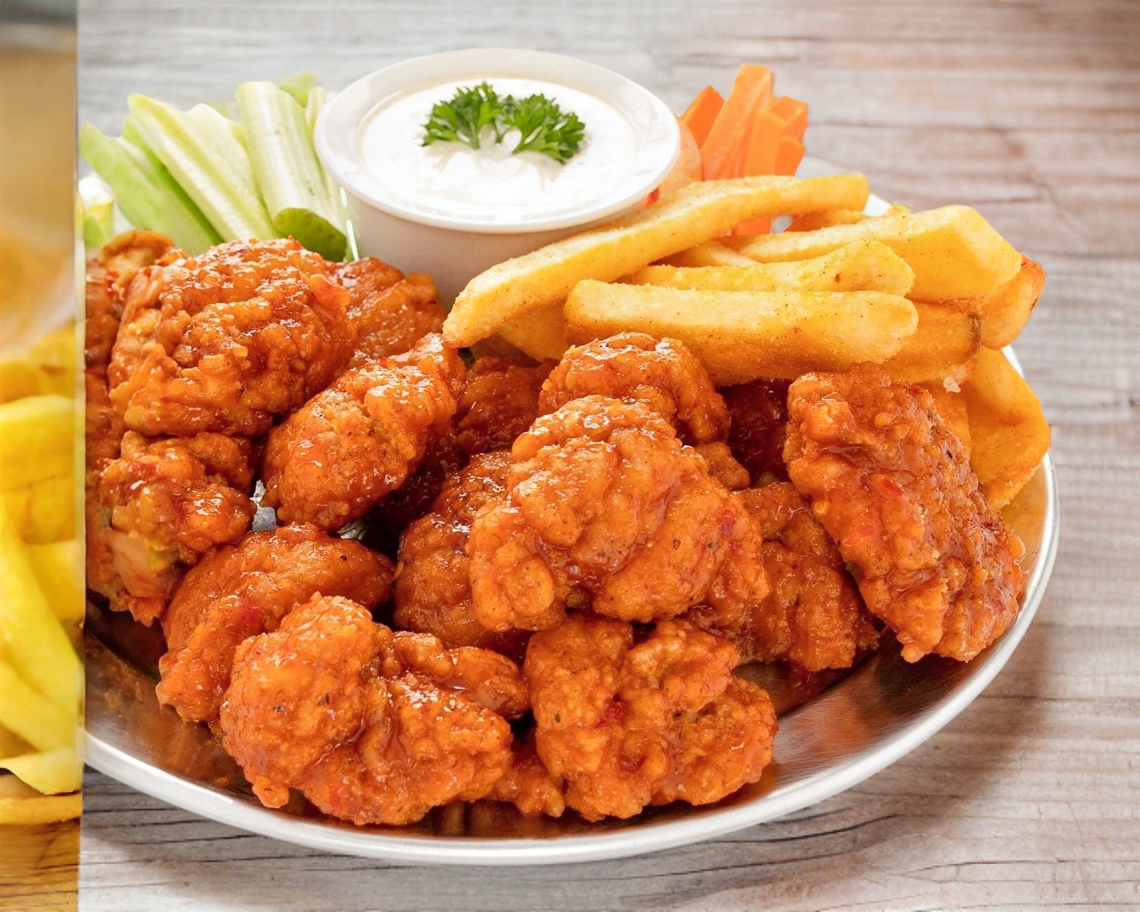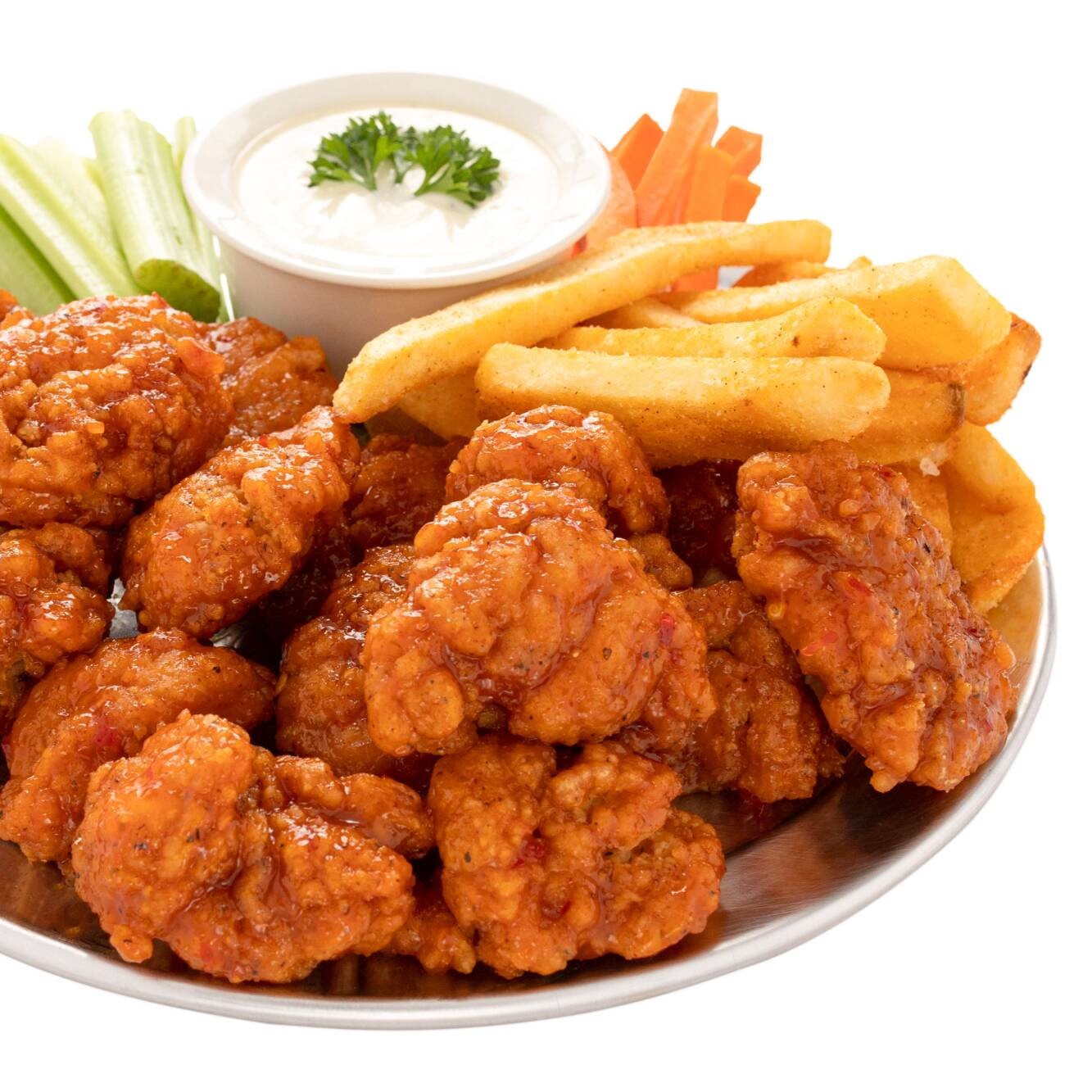 Boneless, piña, aderezo ranch.