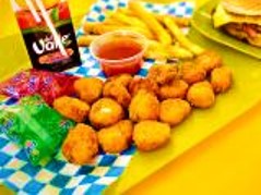 Hamburguesa Pequeña o Palomitas de Pollo*1 + Papas a la Francesa + Juguito + Postrecito*1