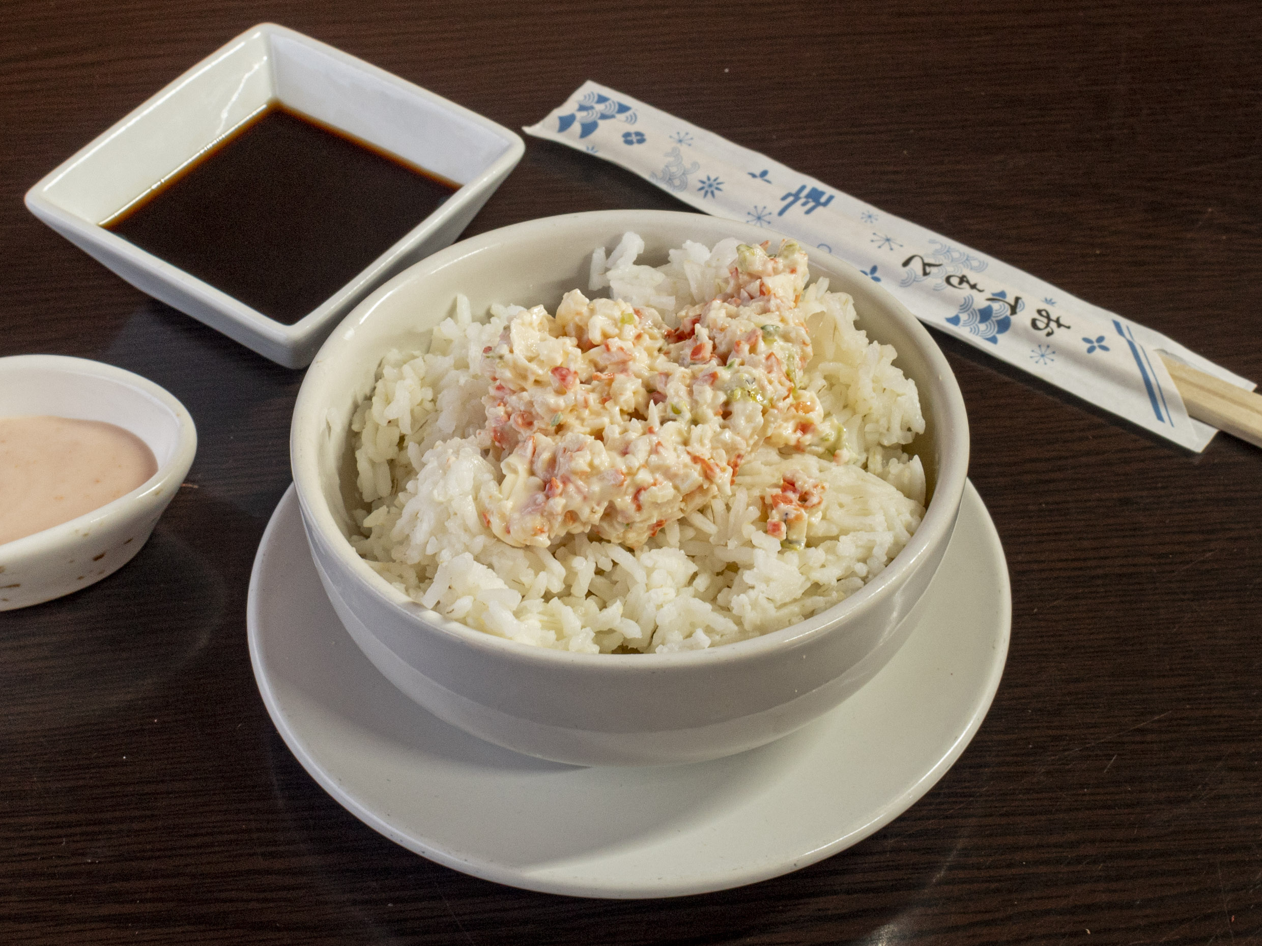 Arroz cubierto con kani.