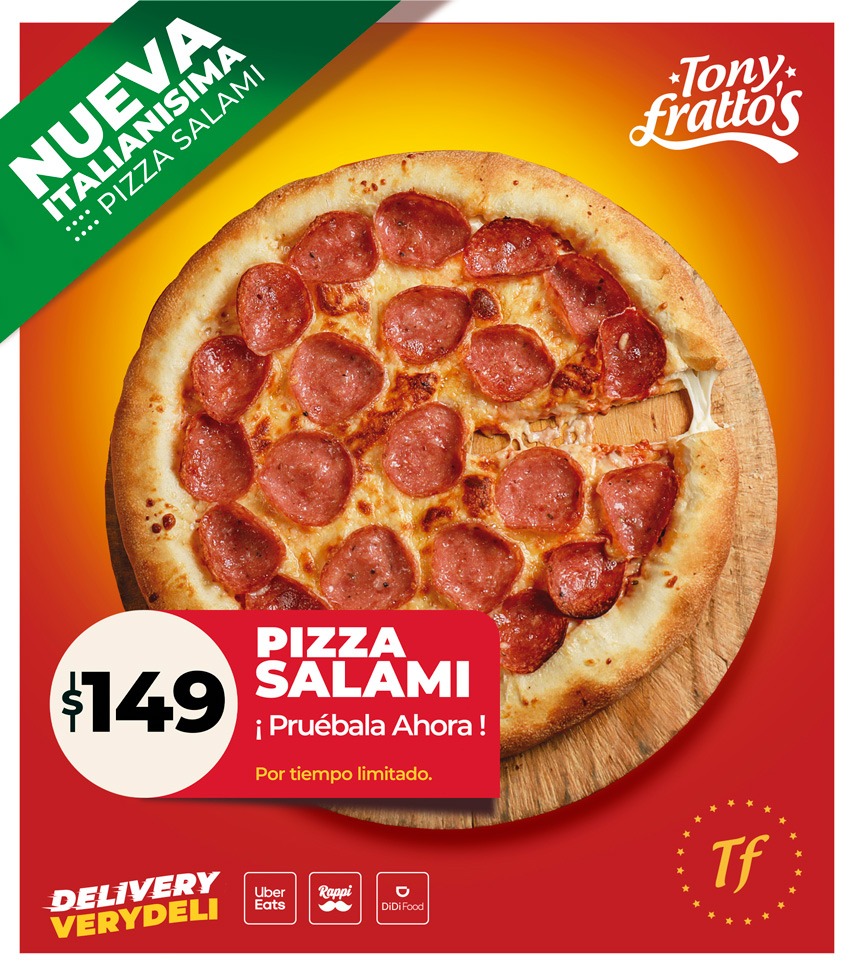 Pizza rematada con delicioso y basto salami, muy italiano! x tiempo limitado! te encatará!