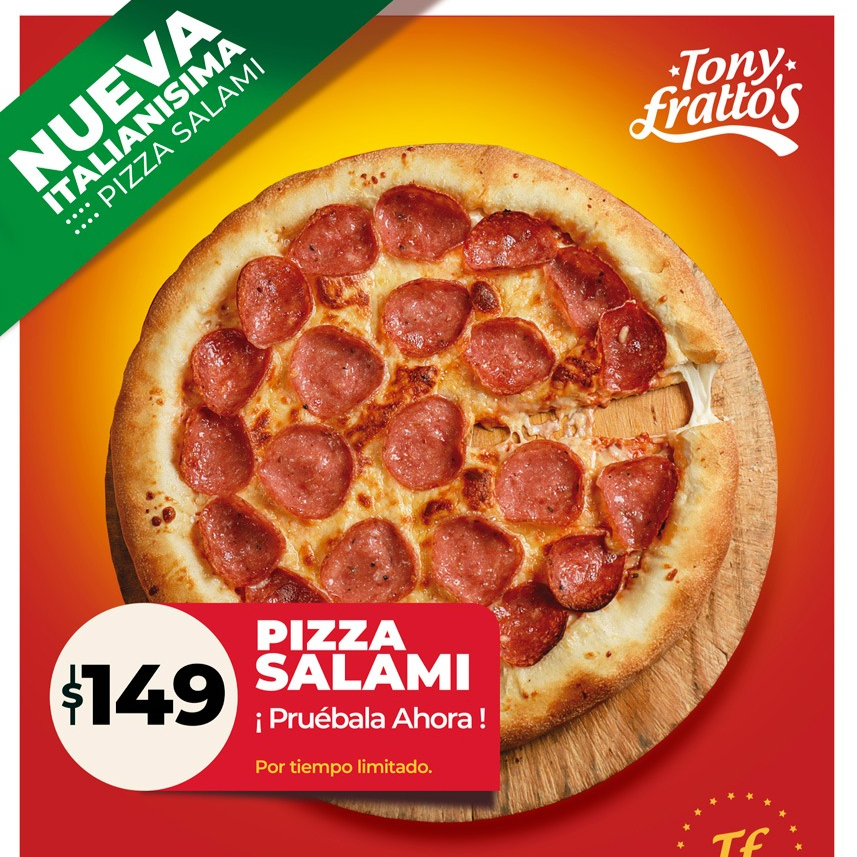 Pizza rematada con delicioso y basto salami, muy italiano! x tiempo limitado! te encatará!