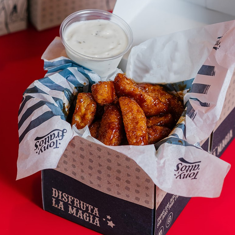300 gramos de Boneless (100% Pechuga de Pollo). Elige entre 3 deliciosas salsas, BBQ, BBQ Spicy y Xtra Hot ..elige tu favorita!!