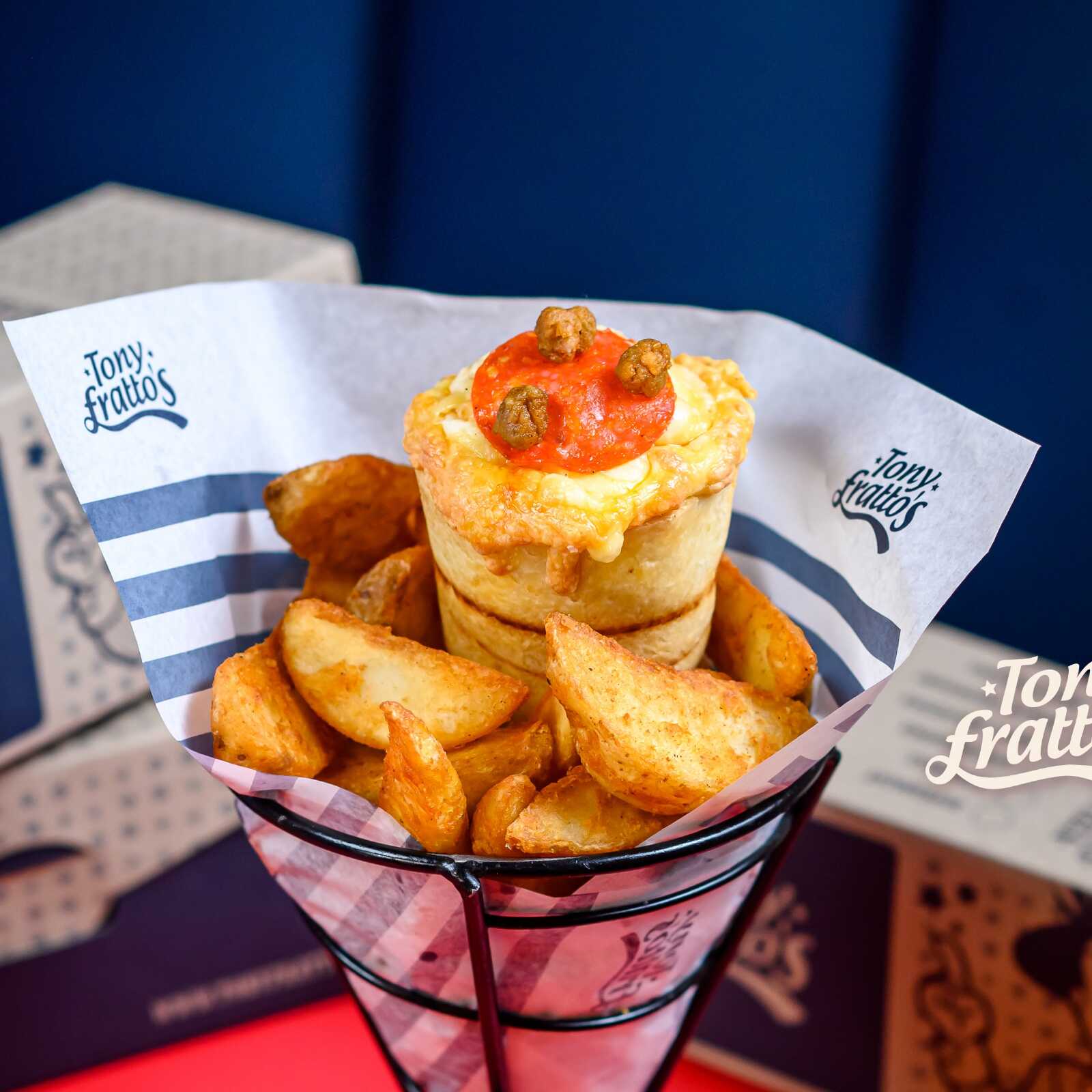 El paquete Ideal: Cono Pizza de especialidad premium, acompañado de papas o gajos y 1 Ref 600ml. pruebalas todas!!