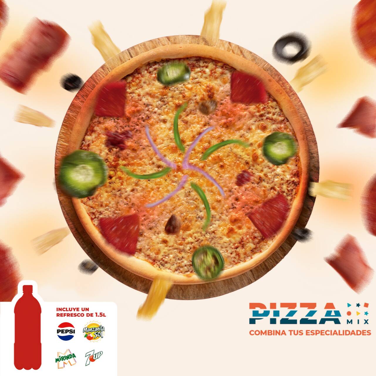 Come completo, al mejor precio!! escoge una Pizza Pepperoni Clásica, Italiana Mama Mia o Hawaiana Clásica, tu complemento entre Aros Parmesano o Rombos de Canela y un Refresco 1.5 lt
