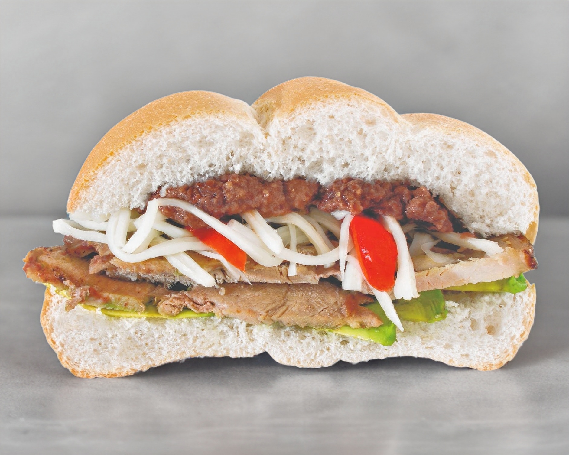 Jamon, pierna, queso amarillo, quesillo, frijoles, aguacate y picante a elegir
